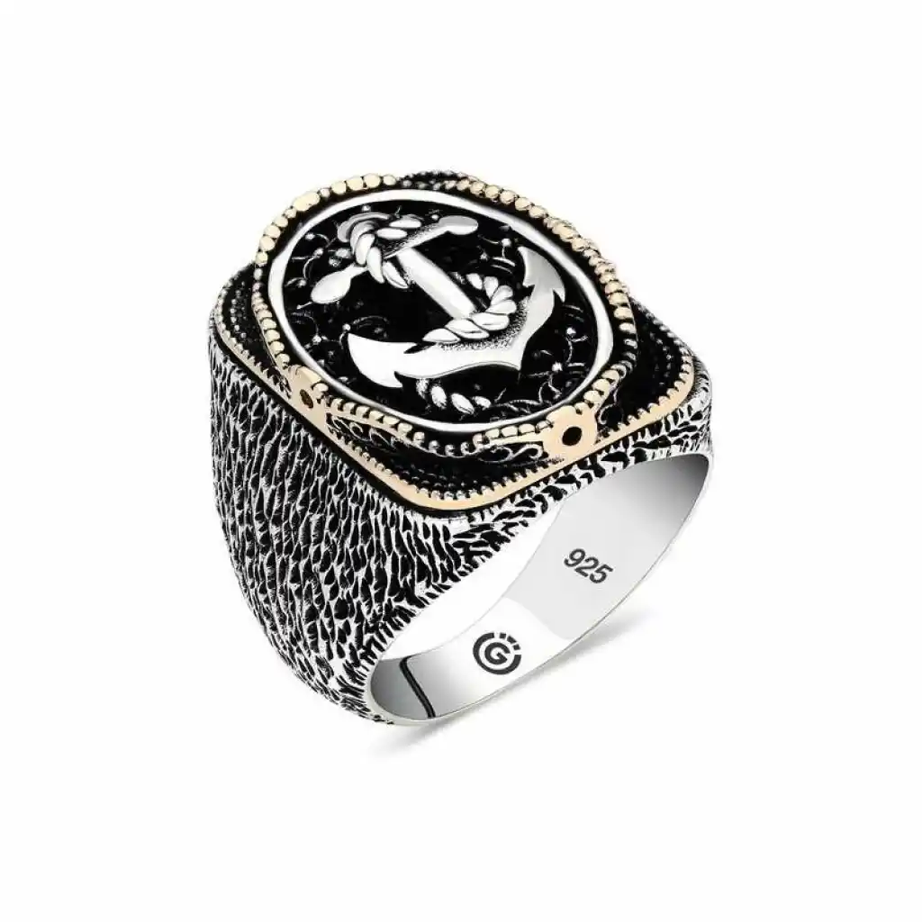 Gümüş üzerindeki deniz çapası oval erkek yüzük modeli günün her anında kullanabileceğiniz şık bir aksesuardır. Bu yüzüğü; kendinize ya da sevdiklerinize doğum gününde, babalar gününde ya da özel günlerde hediye edebilirsiniz. Deniz çapası erkek yüzük modeli 925 ayar gümüşten imal edilmiştir. Gümüş üzerine oksit kaplama yapılmıştır. Oksit kaplama yapılan gümüş erkek yüzük modelleri parlaklığını uzun süre muhafaza eder. Tüm erkek yüzüklerde olduğu gibi gümüş deniz çapası erkek yüzük modeli de el emeği ile üretilmiştir. Gümüş ve değerli taşlar nedeniyle belirtilen ortalama ürün ağırlığında ± %10 sapma olabilmektedir.​