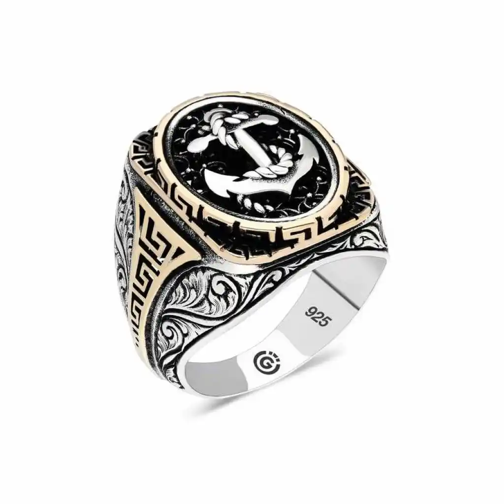 • Gümüş Deniz Çapası Oval Erkek Yüzük Çapa Yüzükler Gümüş Deniz Çapası Oval Erkek Yüzük Gümüş üzerindeki deniz çapası oval erkek yüzük modeli günün her anında kullanabileceğiniz şık bir aksesuardır. Bu