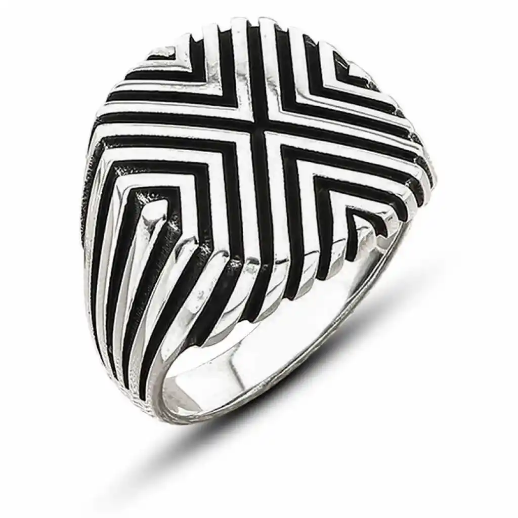 Bu şık tasarım sizler için oluşturuldu... Bu mükemmel yüzük; kendinize yada sevdiklerinize doğum gününde, babalar gününde yada özel günlerde hediye edebilirsiniz. Herkesin severek kullanacağı bu erkek yüzük 925 ayar gümüşten imal edilmiştir. Gümüş üzerine oksit kaplama yapılmıştır. Tüm gümüş erkek yüzüklerinde olduğu gibi gümüş desenli erkek yüzük de tamamı el emeği ile üretilmiştir. Gümüş ve değerli taşlar nedeniyle belirtilen ortalama ürün ağırlığında ± %10 sapma olabilmektedir.