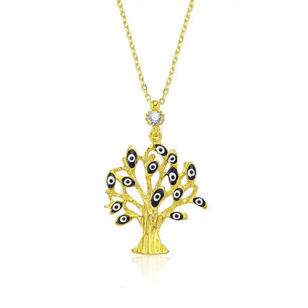 Tuttuğunuz dilekleri simgeleyen bu gümüş dilek ağacı bayan kolye 925 ayar gümüşten imal edilmiştir. Gümüş üzerine altın kaplama yapılmıştır. Altın kaplama yapılan gümüş bayan kolye modelleri parlaklığını uzun süre muhafaza eder ve oksitlenmesi gecikir. Kolye üzerinde bulunan taşlar zirkondur. Gümüş olan zincirin boyu ortalama 45 cm"dir. Tüm gümüş bayan kolye modellerinde olduğu gibi bu gümüş dilek ağacı bayan kolye modeli de el emeği ile üretilmiştir. Gümüş ve değerli taşlar nedeniyle belirtilen ürün ağırlığında ± %10 sapma olabilmektedir.