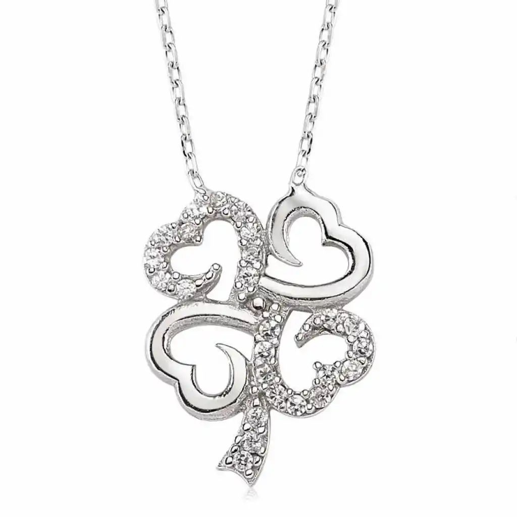 Gümüş Dört Yapraklı Yonca Bayan Kolye