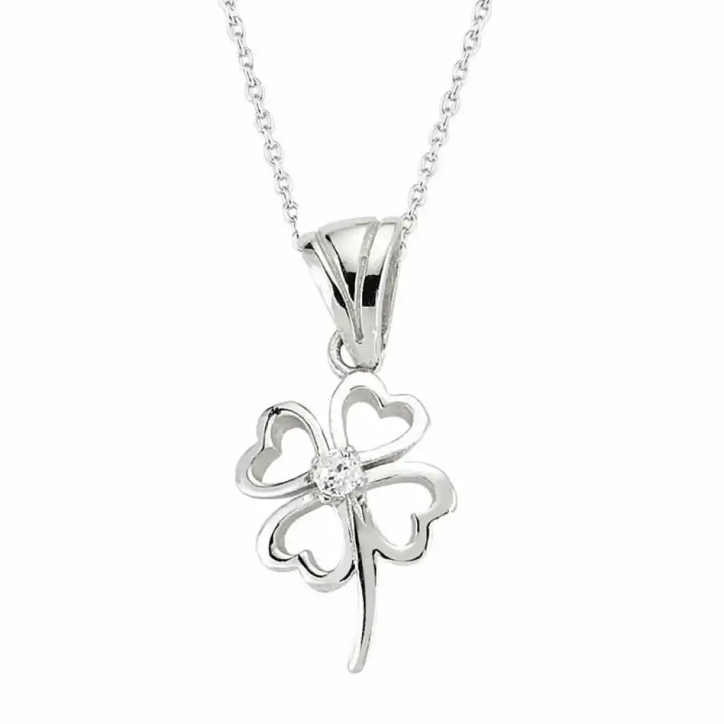 Gümüş Dört Yapraklı Yonca Bayan Kolye