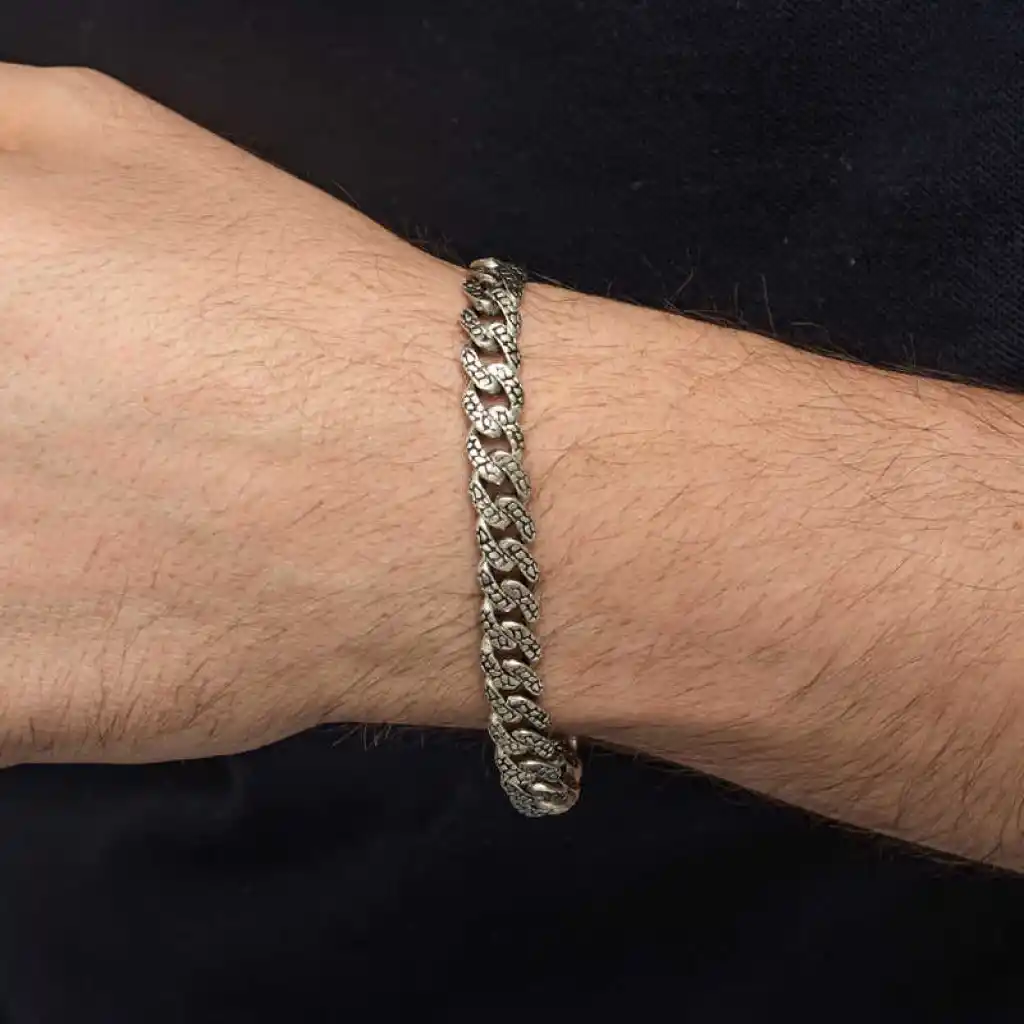 Stil sahibi erkeklerin tercih ettiği,el işçiliğiyle özenle hazırlanmış bu şık bileklik,hem modern hem de klasik tarzınızı tamamlayan mükemmel bir aksesuar.%925 gümüş malzeden üretilmiş olan bu bileklik,dayanıklılığı ve parlaklığıyla dikkat çekiyor.Özel örgü tasarımıyla benzersiz bir görünüm sunan bu bileklik,her anınıza şıklık katmak için ideal.Hafif yapısı sayesinde gün boyu konfor sağlar.Günlük kullanımda,davetlerde veya özel günlerde şık bir tamamlayıcıdır.Kendi tarzınızla uyum sağlayacak farklı renk ve tasarım seçenekleriyle,kendinizi ifade etmenin en güzel yolu. Gümüş üzerine oksit kaplama yapılmıştır.Oksit kaplama yapılan gümüş bileklikler parlaklığını uzun süre muhafaza eder.Tüm gümüş bilekliklerde olduğu gibi gümüş elişi örgü gurmet erkek bileklik de el emeği ile üretilmiştir.Gümüş ve değerli taşlar nedeniyle belirtilen ortalama ürün ağırlığında ± %10 sapma olabilmektedir.