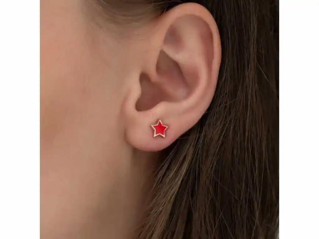 Gümüş çivili küpe modelleri günün her anında kullanabileceğiniz en özel takılar arasındadır. Gümüşün ışıltısını en iyi şekilde dışarıya yansıtabilen ve hafif yapısıyla dikkat çeken gümüş çivili küpeler ile sizler de stilinizi vurgulamaya başlayabilirsiniz. Dış görünümü konusunda hassas olan ve stiliyle ön plana çıkmak isteyen kadınların tercihi olan fosforlu kırmızı yıldız küpe, gençlerin ve kendisini genç hisseden kadınların stiline uyum sağlayabilecek özgün modeller arasında yer almaktadır. Zamansız tasarımlar arasında gösterilen çivili küpeler modaya uyumlu bir şekilde stilinizi canlandırabilmenizi sağlar. Doğum günü hediyesi, sevgililer günü hediyesi veya özel günlerde tercih edilebilecek mükemmel bir seçenektir. Gümüş fosforlu kırmızı yıldız bayan küpe; 925 ayar gümüşten imal edilmiştir. Gümüş üzerine rose kaplama yapılmıştır. Rose kaplama yapılan gümüş küpe modelleri parlaklığını uzun süre muhafaza eder ve oksitlenmesi gecikir. Tüm bayan küpelerde olduğu gibi bu küpe modeli de el emeği ile üretilmiştir. Gümüş ve değerli taşlar nedeniyle belirtilen ortalama ürün ağırlığında ± %10 sapma olabilmektedir.