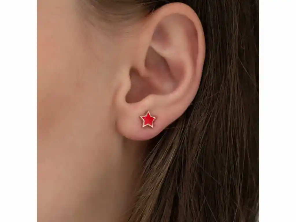 Gümüş çivili küpe modelleri günün her anında kullanabileceğiniz en özel takılar arasındadır. Gümüşün ışıltısını en iyi şekilde dışarıya yansıtabilen ve hafif yapısıyla dikkat çeken gümüş çivili küpeler ile sizler de stilinizi vurgulamaya başlayabilirsiniz. Dış görünümü konusunda hassas olan ve stiliyle ön plana çıkmak isteyen kadınların tercihi olan fosforlu kırmızı yıldız küpe, gençlerin ve kendisini genç hisseden kadınların stiline uyum sağlayabilecek özgün modeller arasında yer almaktadır. Zamansız tasarımlar arasında gösterilen çivili küpeler modaya uyumlu bir şekilde stilinizi canlandırabilmenizi sağlar. Doğum günü hediyesi, sevgililer günü hediyesi veya özel günlerde tercih edilebilecek mükemmel bir seçenektir. Gümüş fosforlu kırmızı yıldız bayan küpe; 925 ayar gümüşten imal edilmiştir. Gümüş üzerine rose kaplama yapılmıştır. Rose kaplama yapılan gümüş küpe modelleri parlaklığını uzun süre muhafaza eder ve oksitlenmesi gecikir. Tüm bayan küpelerde olduğu gibi bu küpe modeli de el emeği ile üretilmiştir. Gümüş ve değerli taşlar nedeniyle belirtilen ortalama ürün ağırlığında ± %10 sapma olabilmektedir.