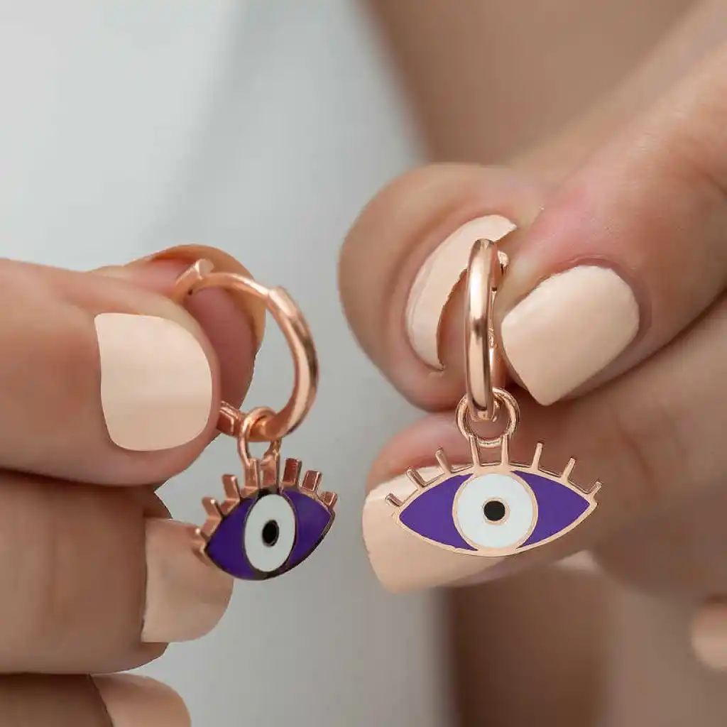 Dış görünüşüne özen gösteren kadınlar için modaya uyumlu şekilde tasarlanan en özel küpe modelleri bu koleksiyonda yer alıyor. Her biri farklı bir tarza ve kullanıma hitap eden küpe modelleri ile sizler de göz alıcı ve büyüleyici bir stil ortaya çıkarabilirsiniz. Fosforlu mor göz küpe, gençlerin ve kendisini genç hisseden kadınların stiline uyum sağlayabilecek özgün modeller arasında yer almaktadır. Bu küpe doğum günü hediyesi, sevgililer günü hediyesi veya özel günlerde tercih edilebilecek mükemmel bir seçenektir. Gümüş fosforlu mor göz bayan küpe; 925 ayar gümüşten imal edilmiştir. Gümüş üzerine rose kaplama yapılmıştır. Rose kaplama yapılan gümüş küpe modelleri parlaklığını uzun süre muhafaza eder ve oksitlenmesi gecikir. Tüm bayan küpelerde olduğu gibi bu küpe modeli de el emeği ile üretilmiştir. Gümüş ve değerli taşlar nedeniyle belirtilen ortalama ürün ağırlığında ± %10 sapma olabilmektedir.