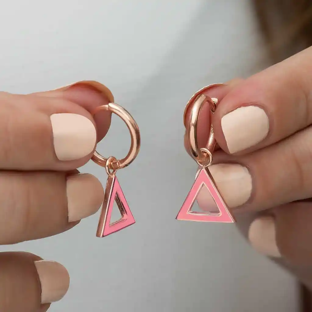 Dış görünüşüne özen gösteren kadınlar için modaya uyumlu şekilde tasarlanan en özel küpe modelleri bu koleksiyonda yer alıyor. Her biri farklı bir tarza ve kullanıma hitap eden küpe modelleri ile sizler de göz alıcı ve büyüleyici bir stil ortaya çıkarabilirsiniz. Fosforlu pembe üçgen küpe, gençlerin ve kendisini genç hisseden kadınların stiline uyum sağlayabilecek özgün modeller arasında yer almaktadır. Bu küpe doğum günü hediyesi, sevgililer günü hediyesi veya özel günlerde tercih edilebilecek mükemmel bir seçenektir. Gümüş fosforlu pembe üçgen bayan küpe; 925 ayar gümüşten imal edilmiştir. Gümüş üzerine rose kaplama yapılmıştır. Rose kaplama yapılan gümüş küpe modelleri parlaklığını uzun süre muhafaza eder ve oksitlenmesi gecikir. Tüm bayan küpelerde olduğu gibi bu küpe modeli de el emeği ile üretilmiştir. Gümüş ve değerli taşlar nedeniyle belirtilen ortalama ürün ağırlığında ± %10 sapma olabilmektedir.