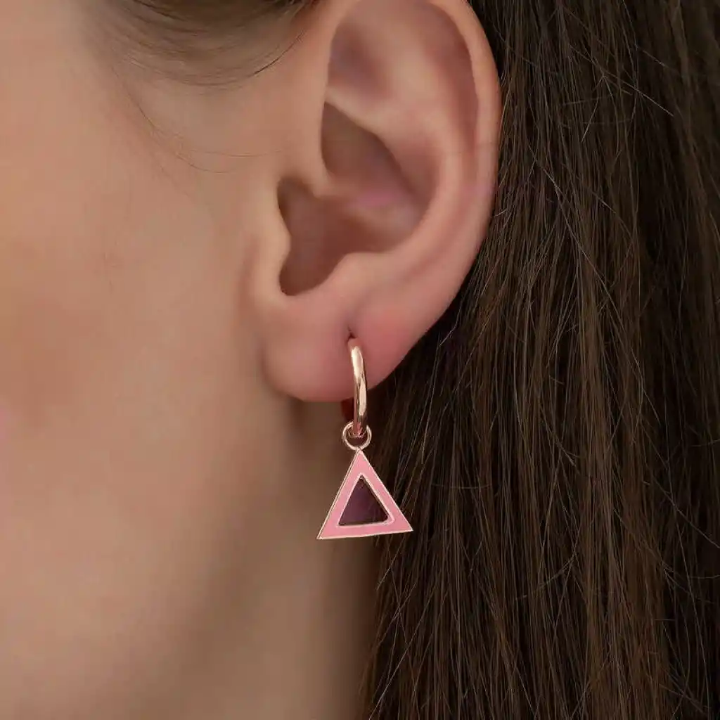 Dış görünüşüne özen gösteren kadınlar için modaya uyumlu şekilde tasarlanan en özel küpe modelleri bu koleksiyonda yer alıyor. Her biri farklı bir tarza ve kullanıma hitap eden küpe modelleri ile sizler de göz alıcı ve büyüleyici bir stil ortaya çıkarabilirsiniz. Fosforlu pembe üçgen küpe, gençlerin ve kendisini genç hisseden kadınların stiline uyum sağlayabilecek özgün modeller arasında yer almaktadır. Bu küpe doğum günü hediyesi, sevgililer günü hediyesi veya özel günlerde tercih edilebilecek mükemmel bir seçenektir. Gümüş fosforlu pembe üçgen bayan küpe; 925 ayar gümüşten imal edilmiştir. Gümüş üzerine rose kaplama yapılmıştır. Rose kaplama yapılan gümüş küpe modelleri parlaklığını uzun süre muhafaza eder ve oksitlenmesi gecikir. Tüm bayan küpelerde olduğu gibi bu küpe modeli de el emeği ile üretilmiştir. Gümüş ve değerli taşlar nedeniyle belirtilen ortalama ürün ağırlığında ± %10 sapma olabilmektedir.