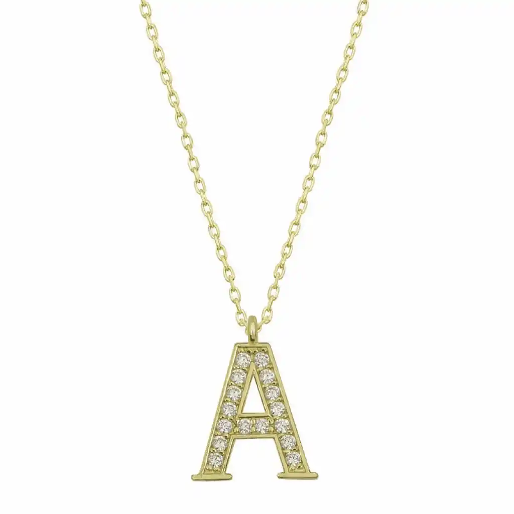 Gümüş Gold A Harfi Kadın Kolye