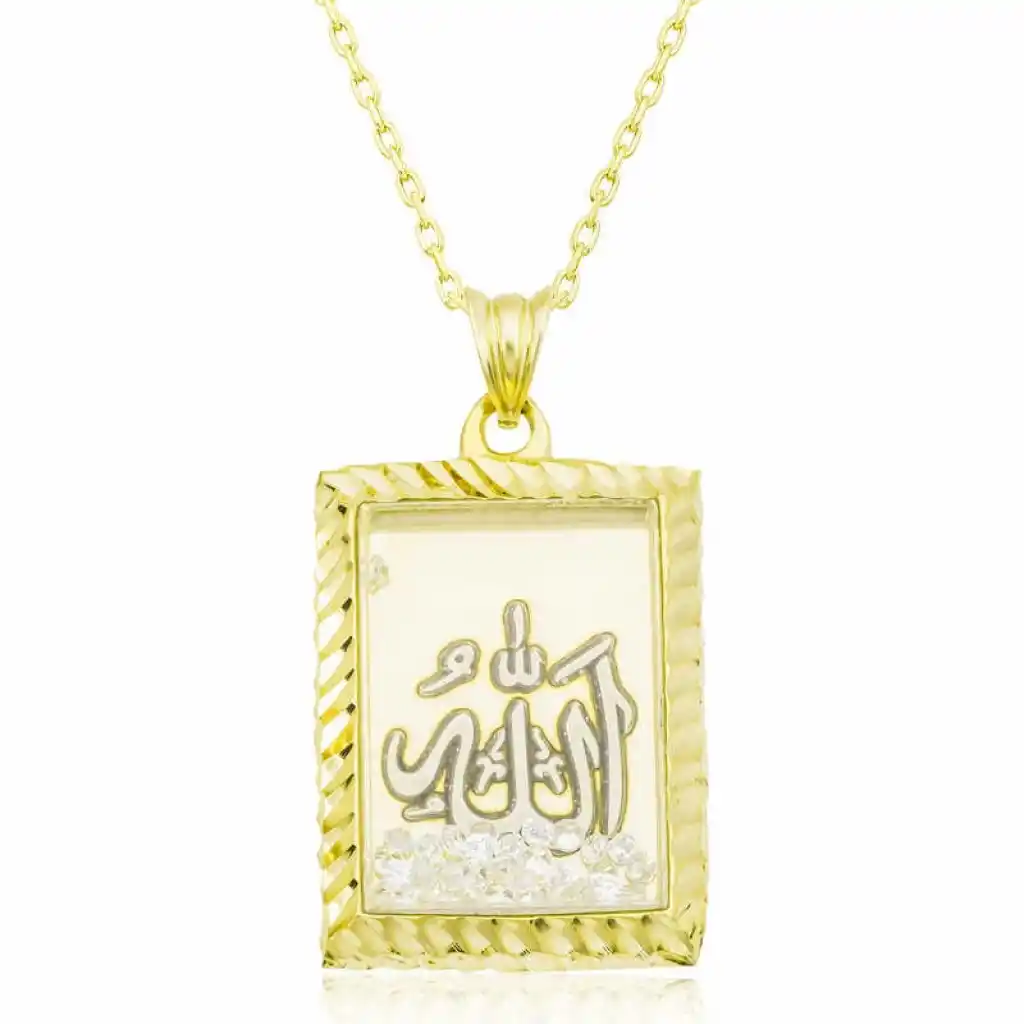 Gümüş Gold Allah Yazılı Kadın Kolye