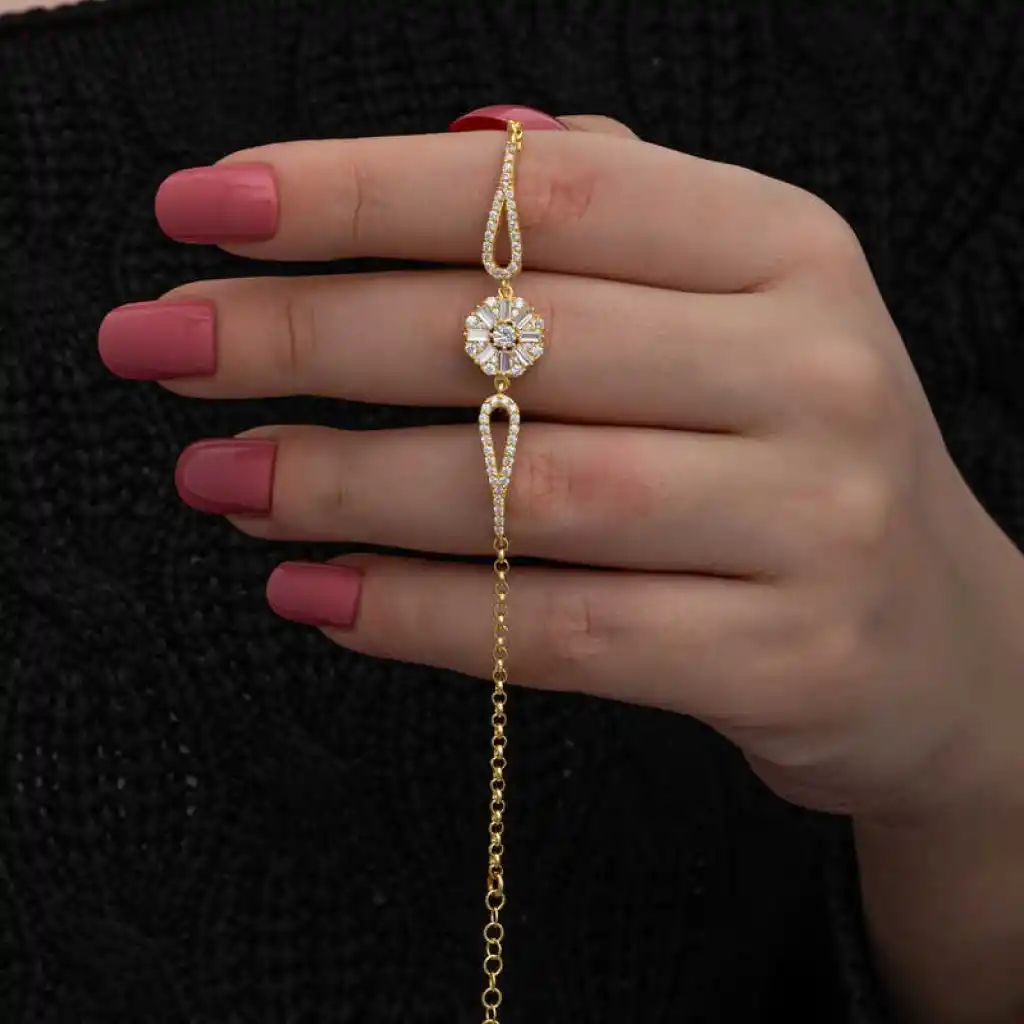 Gümüş Gold Baget Taşlı Kadın Bileklik