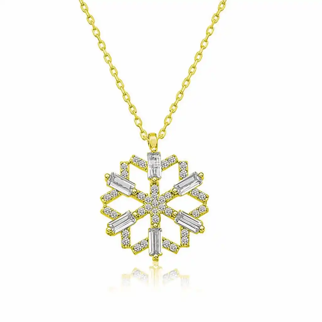 Gümüş Gold Baget Taşlı Kar Tanesi Kolye