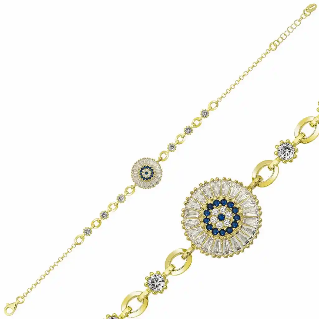 Gümüş Gold Baget Taşlı Nazar Bayan Bileklik