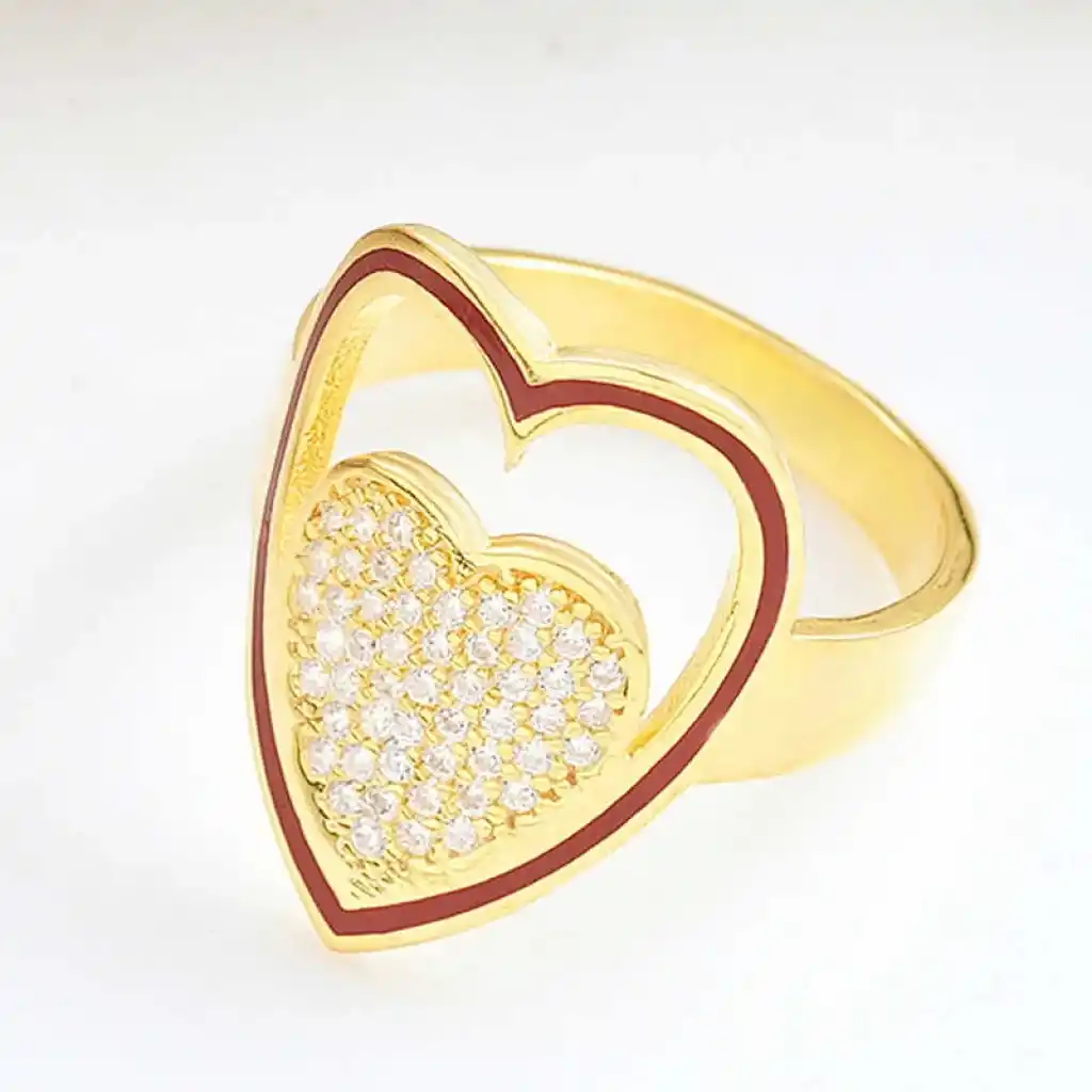 Gümüş Gold Beyaz Taşlı Kalpli Kadın Yüzük