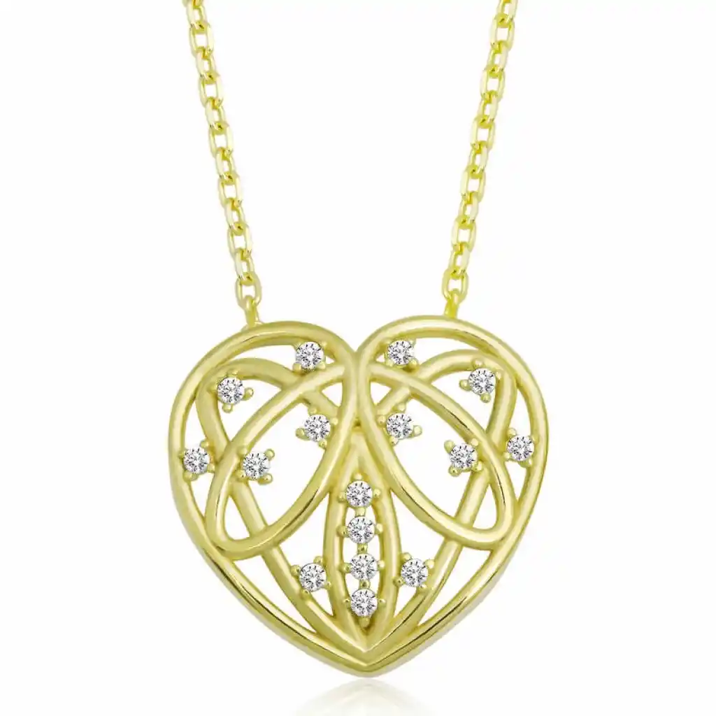 Gümüş Gold Bombeli Kalp Kadın Kolye
