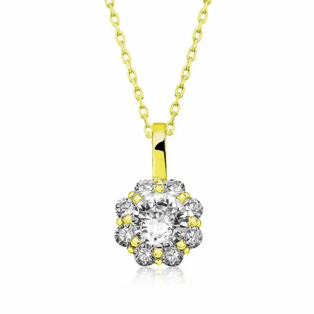 Sevdiklerinize duygularınızı ifade etmenin yolu neden çiçek desenli zarif bir kolye olmasın? Özel zamanlarda O’na gönderebileceğiniz, hediye seçenekleri arasında yer alan bu şık kolye sevdiklerinizi sevindirmenin en güzel yolları arasında yer almaktadır. En kaliteli, en ışıltılı taşlarla hazırlanmış gümüş gold çiçek bayan kolye; sevgisini bir kez daha anlatmak isteyenleri, sen bir çiçeksin demek isteyenleri bekliyor. Bu özel tasarım gümüş gold çiçek bayan kolye 925 ayar gümüşten imal edilmiştir. Gümüş üzerine altın kaplama yapılmıştır. Altın kaplama yapılan gümüş bayan kolye modelleri parlaklığını uzun süre muhafaza eder ve oksitlenmesi gecikir. Gümüş olan zincir boyu ortalama 45 cm"dir. Tüm bayan gümüş kolye modellerinde olduğu gibi gümüş gold çiçek bayan kolye de el emeği ile üretilmiştir. Gümüş ve değerli taşlar nedeniyle belirtilen ürün ağırlığında ± %10 sapma olabilmektedir.
