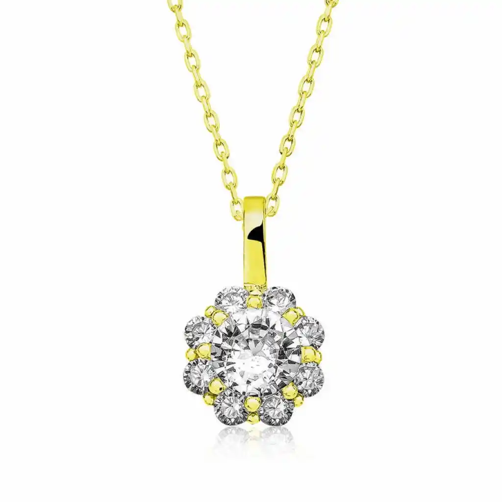 Sevdiklerinize duygularınızı ifade etmenin yolu neden çiçek desenli zarif bir kolye olmasın? Özel zamanlarda O’na gönderebileceğiniz, hediye seçenekleri arasında yer alan bu şık kolye sevdiklerinizi sevindirmenin en güzel yolları arasında yer almaktadır. En kaliteli, en ışıltılı taşlarla hazırlanmış gümüş gold çiçek bayan kolye; sevgisini bir kez daha anlatmak isteyenleri, sen bir çiçeksin demek isteyenleri bekliyor. Bu özel tasarım gümüş gold çiçek bayan kolye 925 ayar gümüşten imal edilmiştir. Gümüş üzerine altın kaplama yapılmıştır. Altın kaplama yapılan gümüş bayan kolye modelleri parlaklığını uzun süre muhafaza eder ve oksitlenmesi gecikir. Gümüş olan zincir boyu ortalama 45 cm"dir. Tüm bayan gümüş kolye modellerinde olduğu gibi gümüş gold çiçek bayan kolye de el emeği ile üretilmiştir. Gümüş ve değerli taşlar nedeniyle belirtilen ürün ağırlığında ± %10 sapma olabilmektedir.