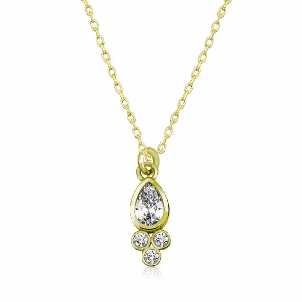 Gümüş Gold Çiğ Damlası Tek Taş Bayan Kolye