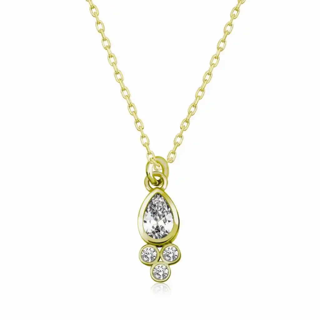 Gümüş Gold Çiğ Damlası Tek Taş Bayan Kolye