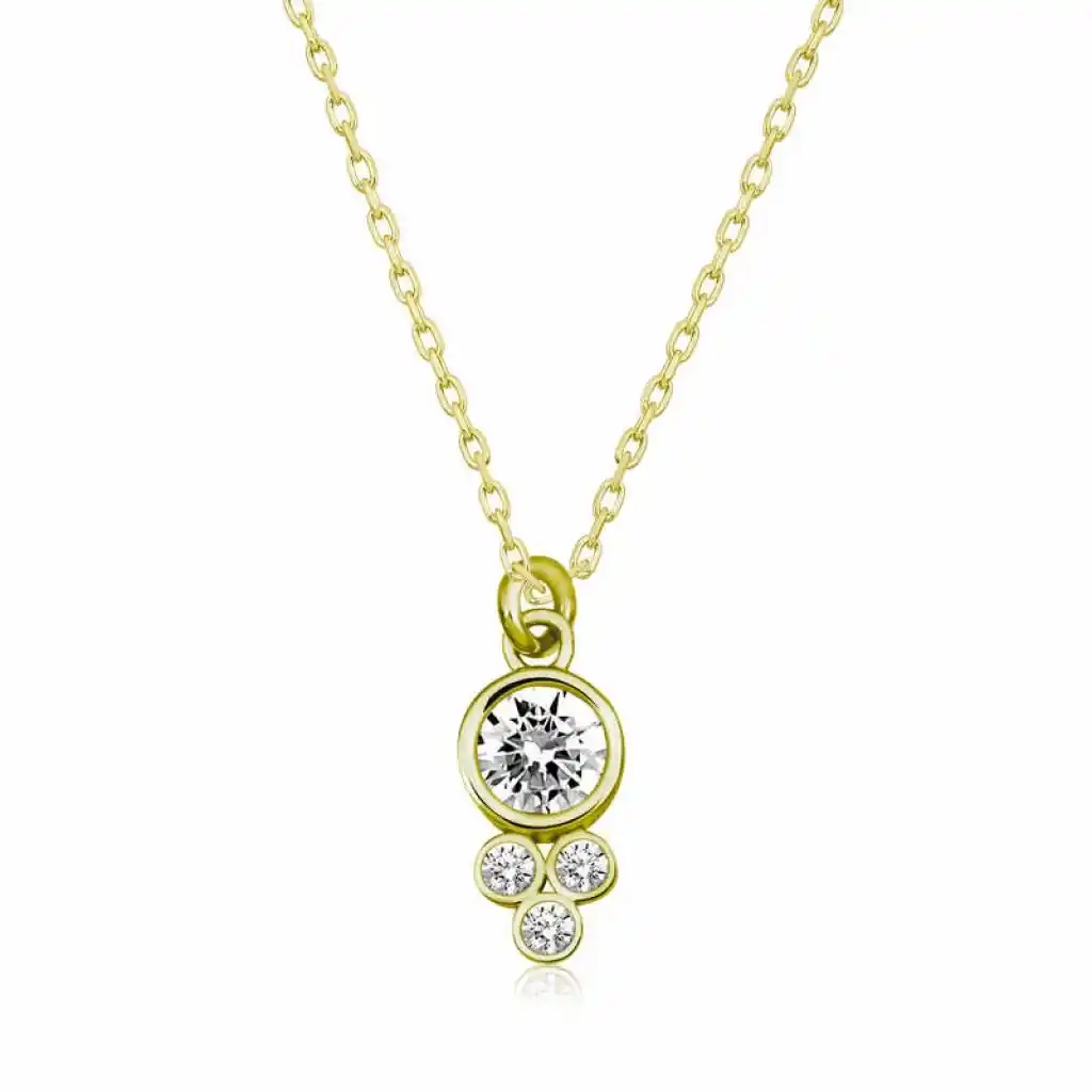 Gümüş Gold Çiğ Damlası Yuvarlak Tek Taş Bayan Kolye