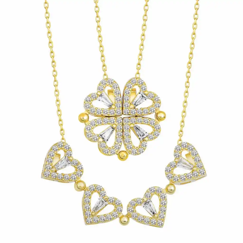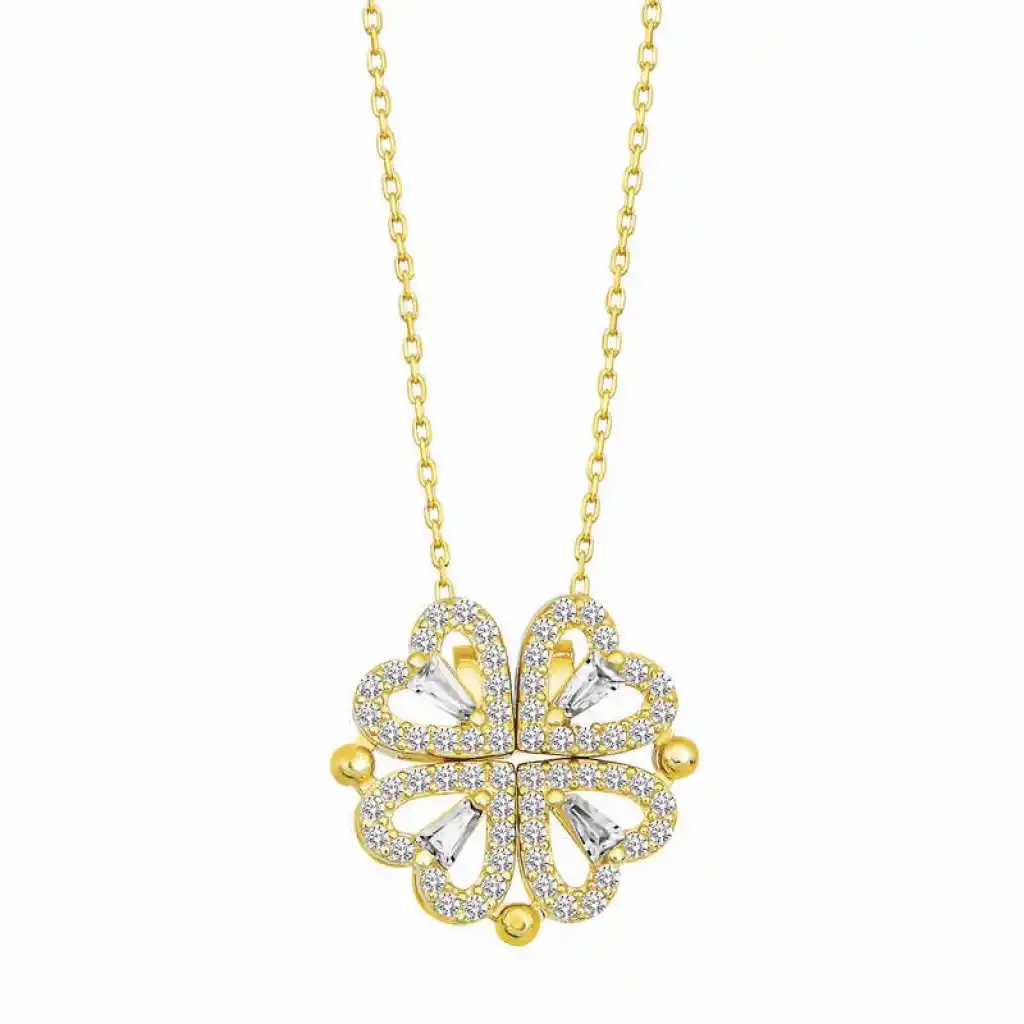 Gümüş Gold Kalpli Açılabilen Yonca Kadın Kolye
