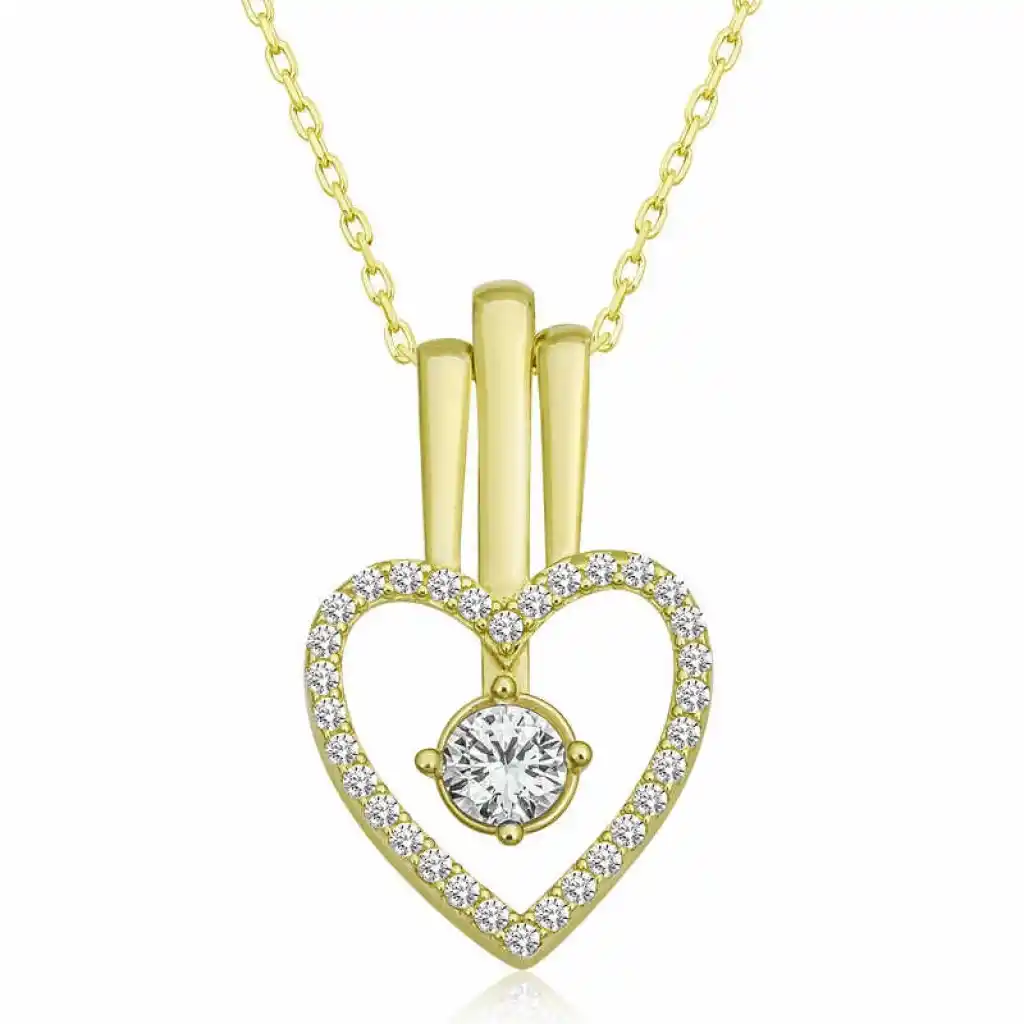Sevgilinize duyduğunuz aşkınızı ve ilk anki mutluluğunuzu her an hatırlayabileceğiniz, en romantik anlarınıza eşlik edecek kalpte birleşen tek taş kolye uzun bir birliktelik beklediğiniz sevdiğinize verebileceğiniz en anlamlı hediyelerden biri olacaktır. Romantik aşkınızı anlatmak için oluşturulan bu özel tasarım ile sevgilinize doğum günü , sevgililer günü yada özel günlerde hediye ederek onları mutlu edebilirsiniz... Bu aşk dolu kolye 925 ayar gümüşten üretilmiştir. Gümüş kalpli tek taş kadın kolye üzerinde bulunan taş zirkondur. Bu kadın gümüş kolye üzerine gold kaplama yapılmıştır. Gold kaplama yapılan kadın kolyeler parlaklığını uzun süre muhafaza eder, oksitlenmeyi geciktirir. Tüm gümüş kolyelerde olduğu gibi bu gümüş kalpli tektaş kadın kolye de el emeği ile üretilmiştir. Gümüş ve değerli taşlar nedeniyle ürün ağırlığında ± %10 sapma olabilmektedir.