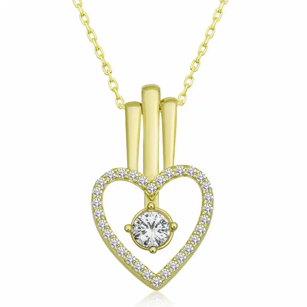 Sevgilinize duyduğunuz aşkınızı ve ilk anki mutluluğunuzu her an hatırlayabileceğiniz, en romantik anlarınıza eşlik edecek kalpte birleşen tek taş kolye uzun bir birliktelik beklediğiniz sevdiğinize verebileceğiniz en anlamlı hediyelerden biri olacaktır. Romantik aşkınızı anlatmak için oluşturulan bu özel tasarım ile sevgilinize doğum günü , sevgililer günü yada özel günlerde hediye ederek onları mutlu edebilirsiniz... Bu aşk dolu kolye 925 ayar gümüşten üretilmiştir. Gümüş kalpli tek taş kadın kolye üzerinde bulunan taş zirkondur. Bu kadın gümüş kolye üzerine gold kaplama yapılmıştır. Gold kaplama yapılan kadın kolyeler parlaklığını uzun süre muhafaza eder, oksitlenmeyi geciktirir. Tüm gümüş kolyelerde olduğu gibi bu gümüş kalpli tektaş kadın kolye de el emeği ile üretilmiştir. Gümüş ve değerli taşlar nedeniyle ürün ağırlığında ± %10 sapma olabilmektedir.
