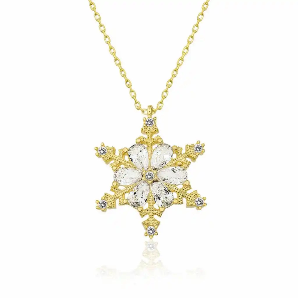 Kadınların ışıltısı, berraklığı kar tanesine benzetilmektedir. Kar çiçeği de sevdiğiniz kişiyi sembolize etmektedir. Kar tanelerinin her birinin bayanlar gibi eşsiz ve ayrı kıymette olması onları özel kılan bir diğer özelliktir. Kar tanesinin asilliği her dönemde dikkat çekmeyi başarmıştır. Bunun yanında insanların tıpkı kar taneleri gibi birbirlerine zarar vermeden de mutlu bir şekilde yaşayabileceklerini sembolize etmektedir. Bu şık ve anlamlı kolye; doğum günü hediyesi, sevgililer günü hediyesi veya annelere hediye olarak özel günlerde tercih edilebilecek mükemmel bir seçenektir. Kolye, 925 ayar gümüşten imal edilmiştir. Gümüş üzerine altın kaplama yapılmıştır. Altın kaplama yapılan ürünler parlaklığını uzun süre muhafaza eder ve ürünün oksitlenmesi gecikir. Tüm gümüş bayan kolyelerde olduğu gibi bu gümüş kar çiçeği bayan kolye de tamamı el emeği ile üretilmiştir. Gümüş ve değerli taşlar nedeniyle belirtilen ortalama ürün ağırlığında ± %10 sapma olabilmektedir.