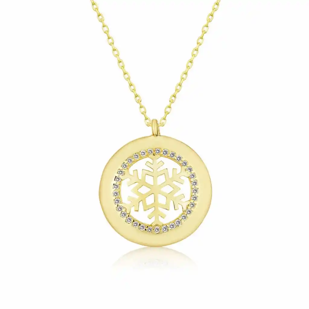 Gümüş Gold Kar Tanesi Bayan Kolye