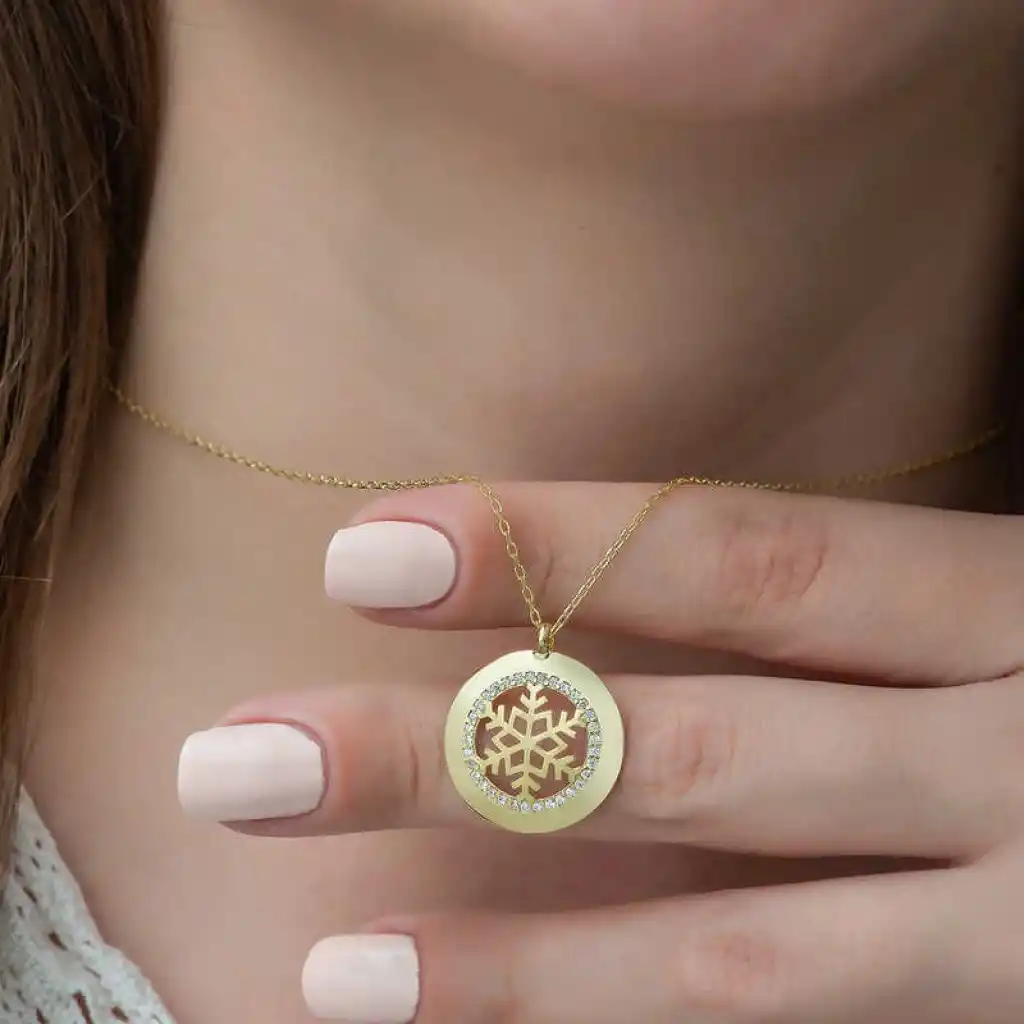 Kadınların ışıltısı, berraklığı kar tanesine benzetilmektedir. Kar taneleri sevdiğiniz kişiyi sembolize etmektedir. Kar tanelerinin her birinin bayanlar gibi eşsiz ve ayrı kıymette olması onları özel kılan bir diğer özelliktir. Kar tanesinin asilliği her dönemde dikkat çekmeyi başarmıştır. Bunun yanında insanların tıpkı kar taneleri gibi birbirlerine zarar vermeden de mutlu bir şekilde yaşayabileceklerini sembolize etmektedir. Bu şık ve anlamlı kolye; doğum günü hediyesi, sevgililer günü hediyesi veya annelere hediye olarak özel günlerde tercih edilebilecek mükemmel bir seçenektir. Kolye, 925 ayar gümüşten imal edilmiştir. Gümüş üzerine rose altın kaplama yapılmıştır. Rose altın kaplama yapılan ürünler parlaklığını uzun süre muhafaza eder ve ürünün oksitlenmesi gecikir. Tüm gümüş bayan kolyelerde olduğu gibi bu gümüş gold kar tanesi bayan kolye de tamamı el emeği ile üretilmiştir. Gümüş ve değerli taşlar nedeniyle belirtilen ortalama ürün ağırlığında ± %10 sapma olabilmektedir.