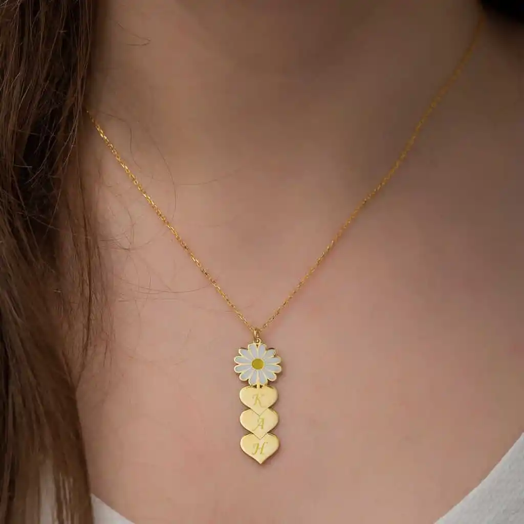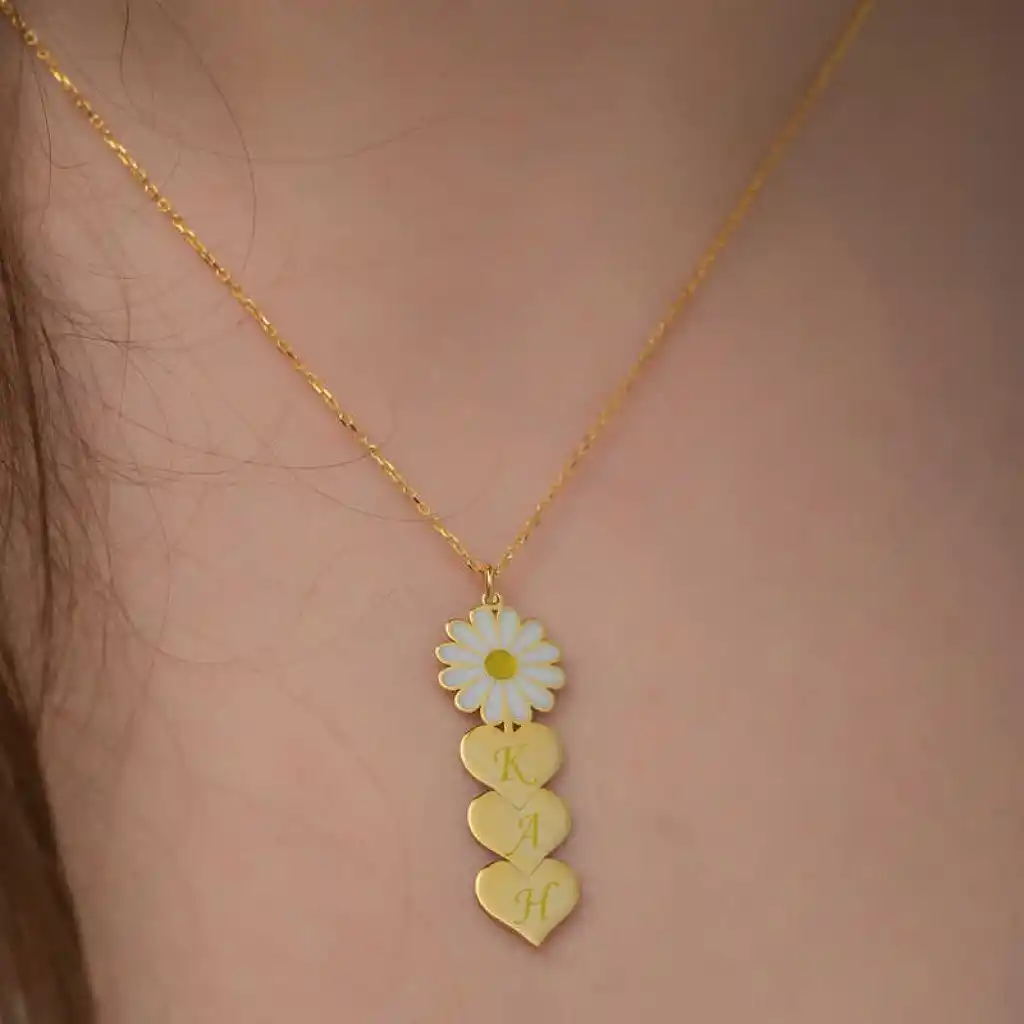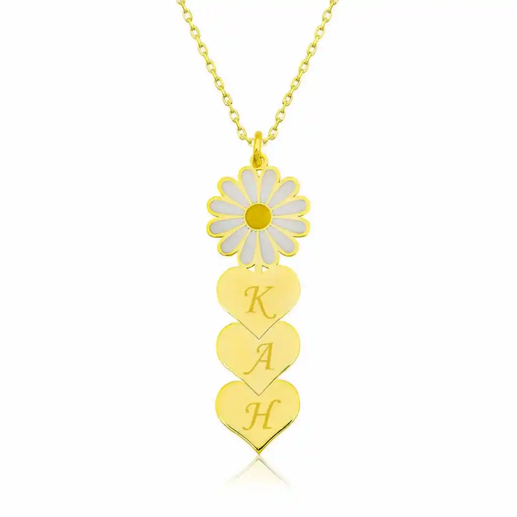 Gümüş Gold Kişiye Özel Kalpli Papatya Kolye
