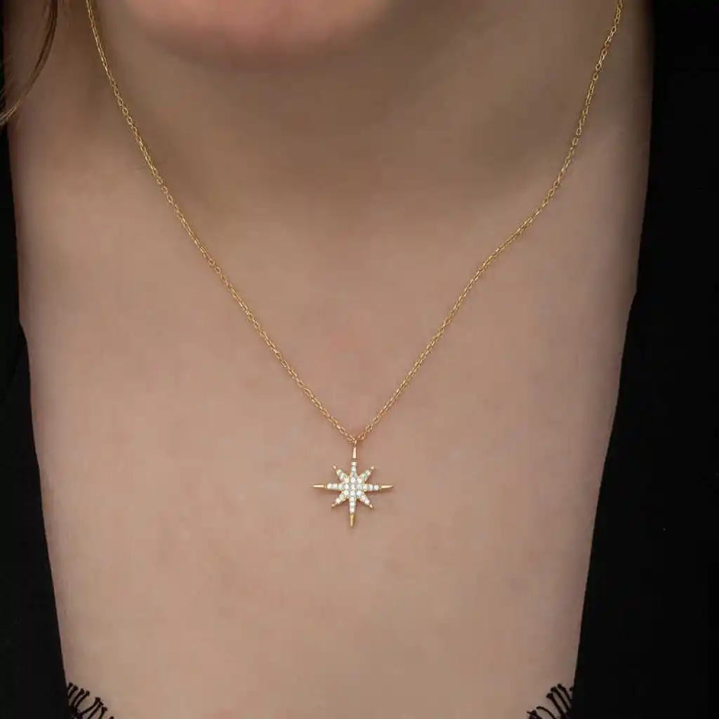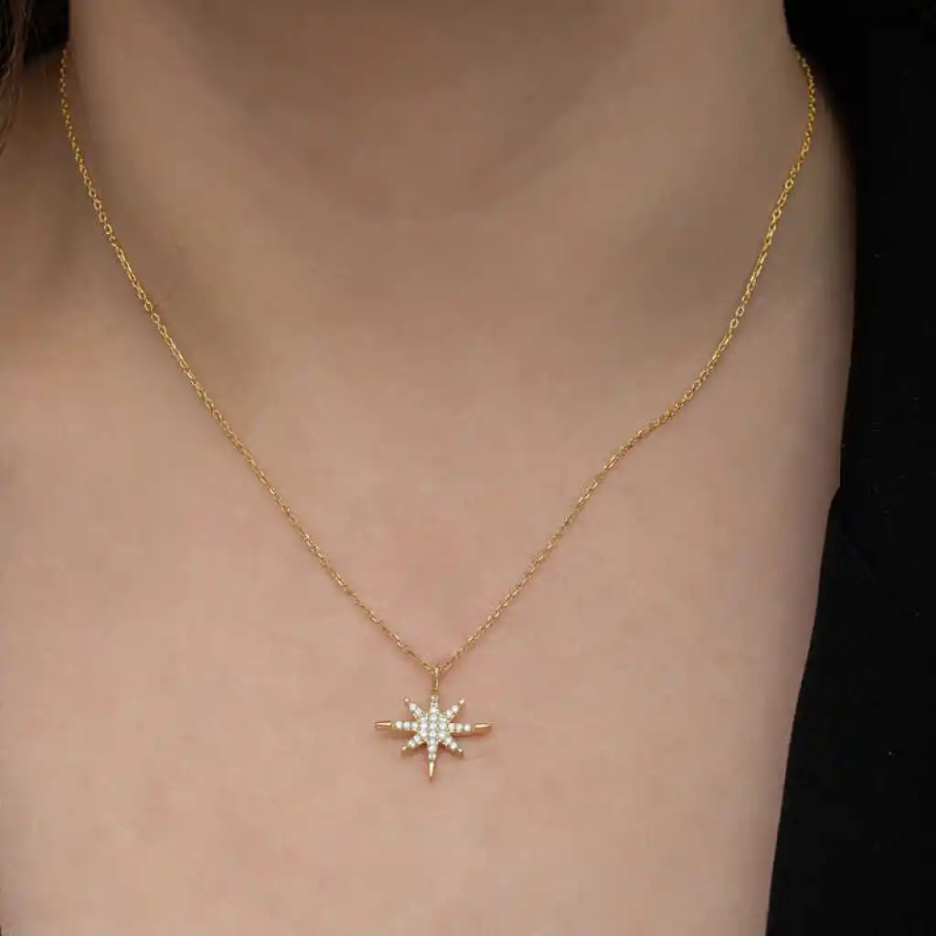 Gümüş Gold Kutup Yıldızı Kadın Kolye