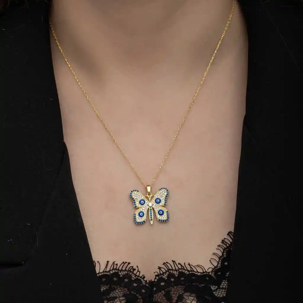 Gümüş Gold Nazarlı Kelebek Kadın Kolye
