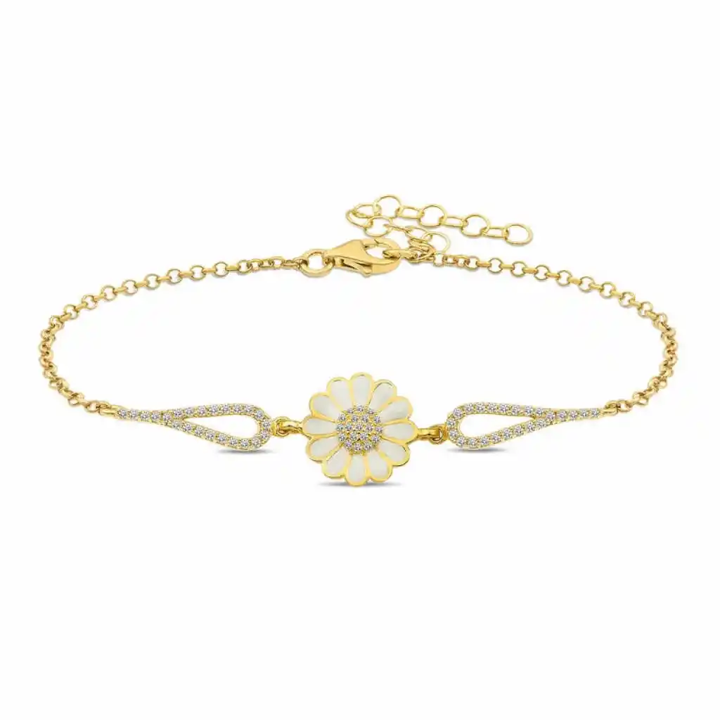 Papatya çiçeği, temiz sevgi anlamını ifade eder. En büyük özelliklerinden biri her sapında bir tane olmasıdır. Bu güzellik tasarlanarak ortaya çıkan bu ışıl ışıl bileklik, zirkon taşlarla süslenmiştir... Bu şık bileklik; doğum günü hediyesi, sevgililer günü hediyesi veya annelere hediye olarak özel günlerde tercih edilebilecek mükemmel bir seçenektir. Gümüş gold papatya bayan bileklik 925 ayar gümüşten imal edilmiştir. Bu bileklik üzerinde rose altın kaplama yapılmıştır. Rose altın kaplama yapılan ürünler parlaklığını uzun süre muhafaza eder. Üzerinde bulunan taşlar zirkon"dur. Tüm gümüş bayan bileklik modellerinde olduğu gibi gümüş gold papatya bayan bileklik modeli de el emeği ile üretilmiştir. Gümüş ve değerli taşlar nedeniyle belirtilen ortalama ürün ağırlığında ± %10 sapma olabilmektedir.