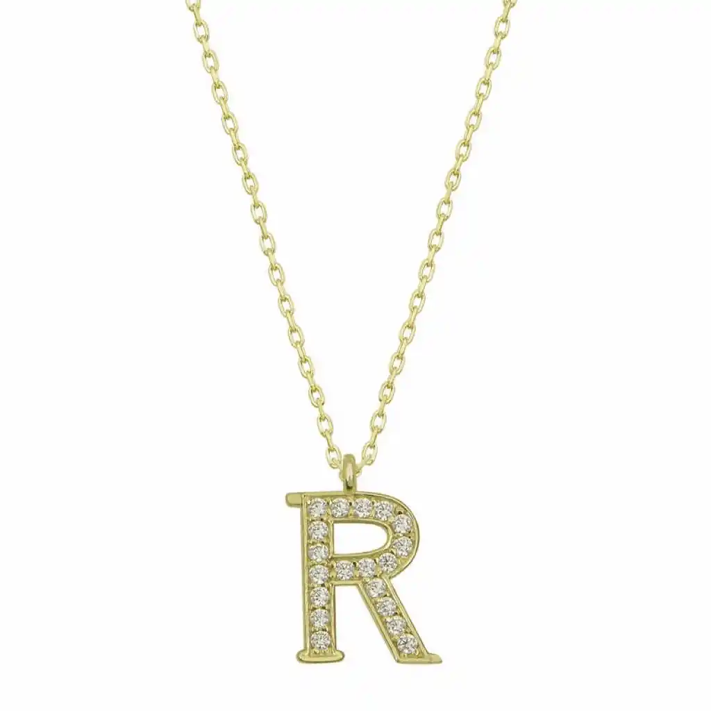 Gümüş Gold R Harfi Kadın Kolye
