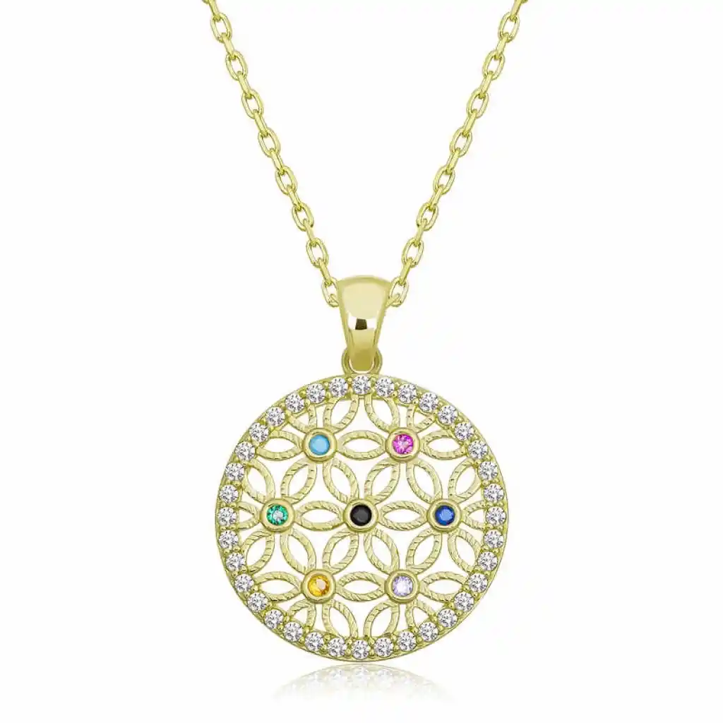 Gümüş Gold Renkli Taşlı Yaşam Çiçeği Kadın Kolye
