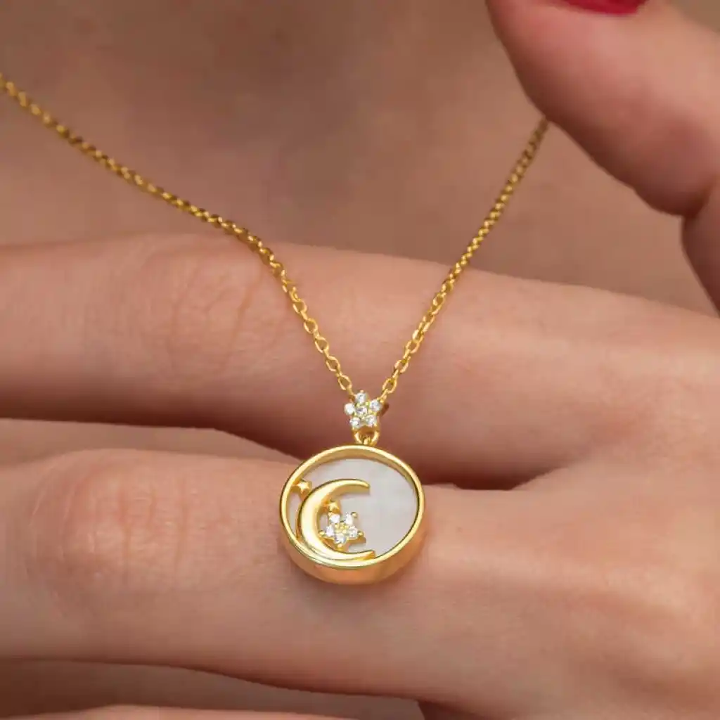 Gümüş Gold Sedef Taşlı Ay Yıldız Hilal Kadın Kolye