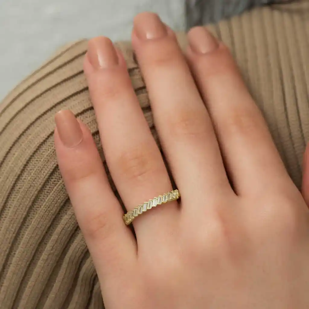 Gümüş Gold Sıralı Baget Taşlı Bayan Yüzük