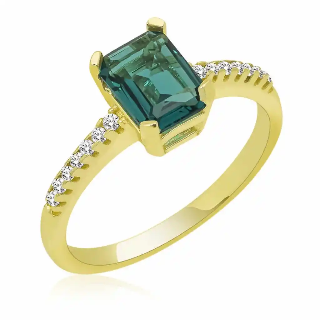 Gümüş Gold Yeşil Baget Taşlı Kadın Yüzük