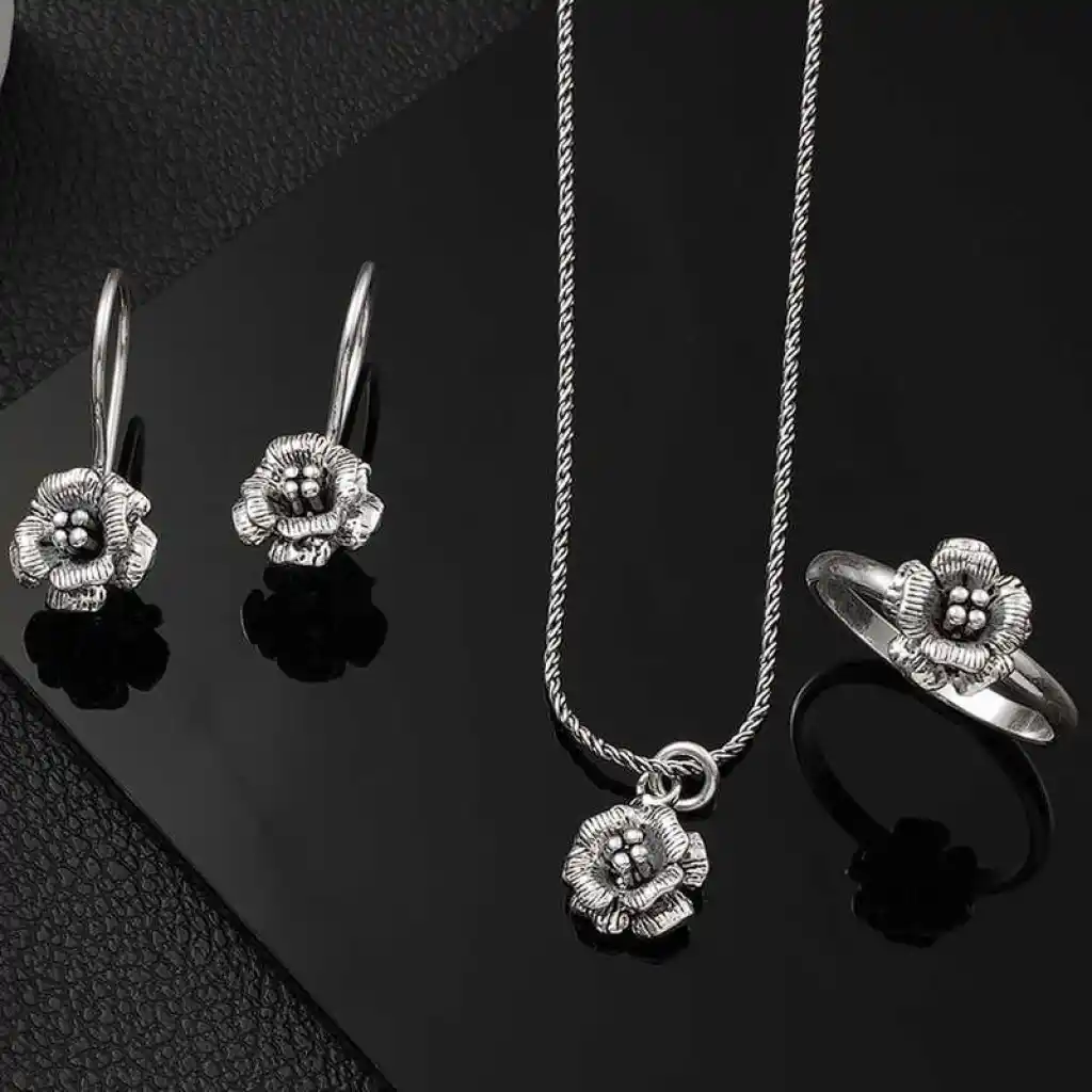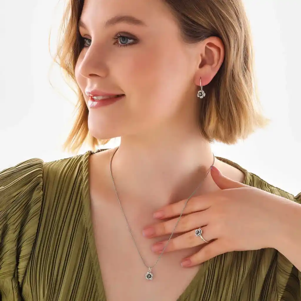 Sevdiklerinize duygularınızı ifade etmenin en özel ve zarif yolu O’na gönderebileceğiniz şık, rengarenk ve mis kokulu çiçeklerdir. Özel günlerde verilecek hediyeler arasında olan çiçek, bu kez gümüş set ile anlam buldu. En kaliteli, en parlak, en ışıltılı taşlarla hazırlanmış gümüş gül kadın set, sevgisini bir kez daha anlatmak isteyenleri, sen bir çiçeksin demek isteyenleri bekliyor. Zihnin duruluğunu ve saflığını ifade eden çiçek; 925 ayar gümüşten imal edilmiştir. Gümüş üzerine oksit kaplama yapılmıştır. Oksit kaplama yapılan gümüş setler parlaklığını uzun süre muhafaza eder, oksitlenmesi gecikir. Tüm kadın gümüş setlerde olduğu gibi gümüş gül kadın set de el emeği ile üretilmiştir. Gümüş ve değerli taşlar nedeniyle belirtilen ürün ağırlığında ± %10 sapma olabilmektedir.