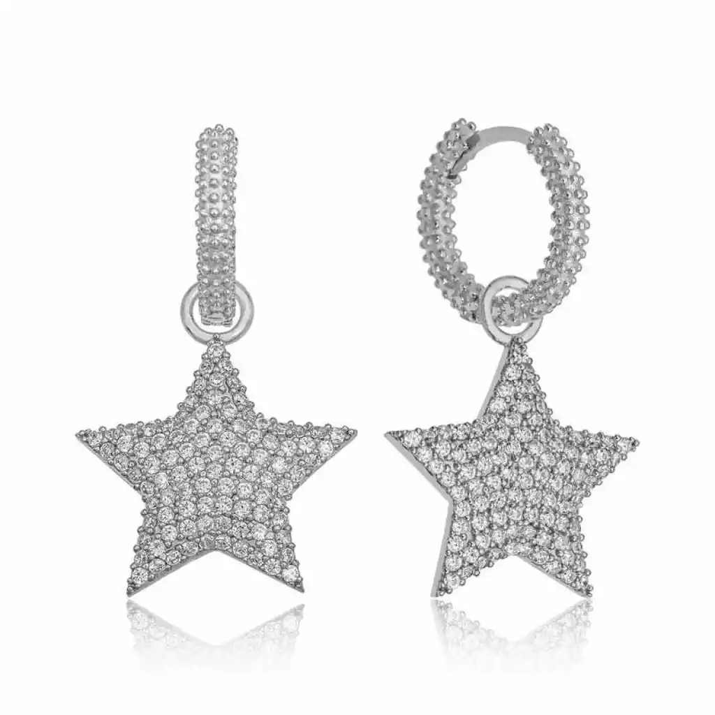 Yıldız, pek çok toplumda ve öğretide şans getirildiğine inanılan uğurlu bir semboldür. Venüs Gezegeninin enerjisini taşır. Venüs Gezegeni, aşk ve aşk enerjisinin de temsilcisidir. Bu şık zirkon taşlardan oluşan yıldız küpe; doğum günü hediyesi, sevgililer günü hediyesi veya özel günlerde tercih edilebilecek mükemmel bir seçenektir. Gümüş rodyum zirkon taşlı yıldız bayan küpe 925 ayar gümüşten imal edilmiştir. Bu küpe üzerinde rodyum kaplama vardır. Rodyum kaplama yapılan gümüş bayan küpe modelleri parlaklığını uzun süre muhafaza eder. Tüm gümüş bayan küpe modellerimizde olduğu gibi gümüş rodyum taşlı yıldız bayan küpe modeli de el emeği ile üretilmiştir. Gümüş ve değerli taşlar nedeniyle belirtilen ortalama ürün ağırlığında ± %10 sapma olabilmektedir.