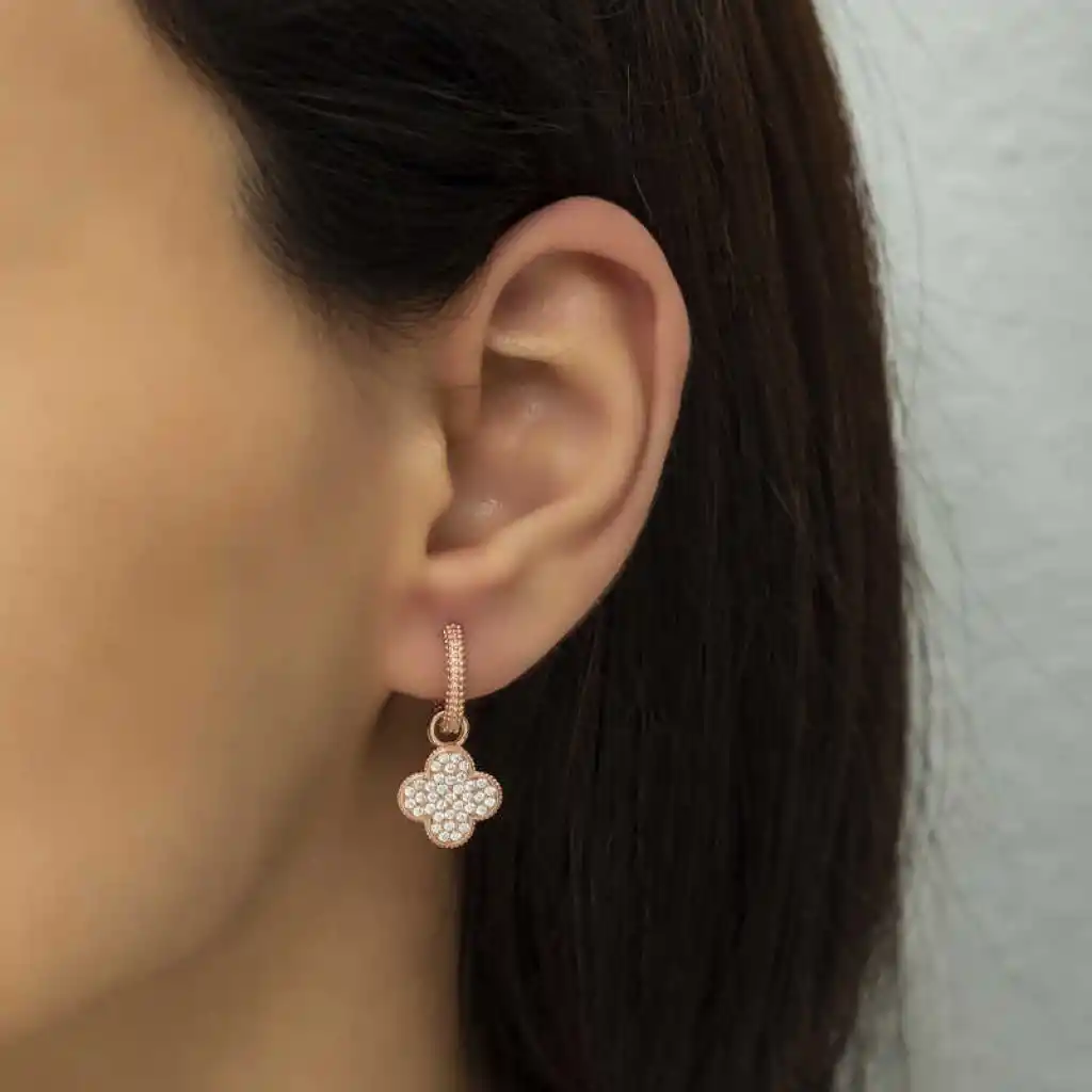 Dört yapraklı yonca bütün kültürlerde iyi şansın sembolü olarak kabul edilir. Yoncanın dört yaprağının da ayrı birer anlamı vardır. Birinci yaprak ümidi, ikincisi imanı, üçüncüsü aşkı, dördüncü yaprak ise şansı simgeler. Yoncadan oluşan özel tasarım bayan küpe modeli 925 ayar gümüşten imal edilmiştir. Bu zarif küpe genç aşıkların özel günlerde tercih edebileceği çok şık bir hediye seçeneği olacaktır. Gümüş yonca bayan küpe üzerinde rose kaplama vardır. Rose kaplama yapılan gümüş ürünler parlaklığını uzun süre muhafaza eder ve oksitlenmesini geciktirir. Gümüş yonca bayan küpe sizin olduğu kadar sevdiklerinizin de keyifle takacağı en güzel hediyelerden biri olacaktır. Tüm gümüş bayan küpe modellerimizde olduğu gibi gümüş yonca bayan küpe de el emeği ile üretilmiştir. Gümüş ve değerli taşlar nedeniyle belirtilen ürün ağırlığında ± %10 sapma olabilmektedir.
