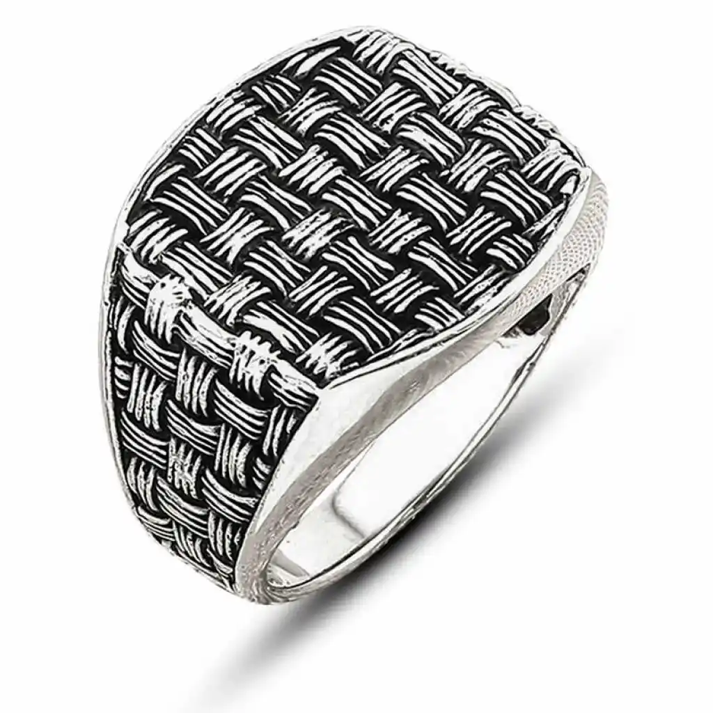 Gümüş Hasır Desenli Erkek Yüzük