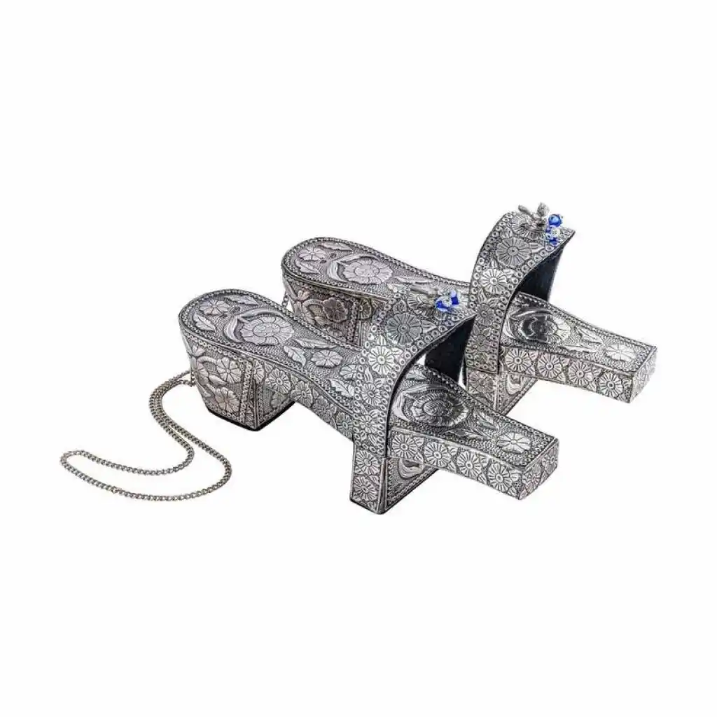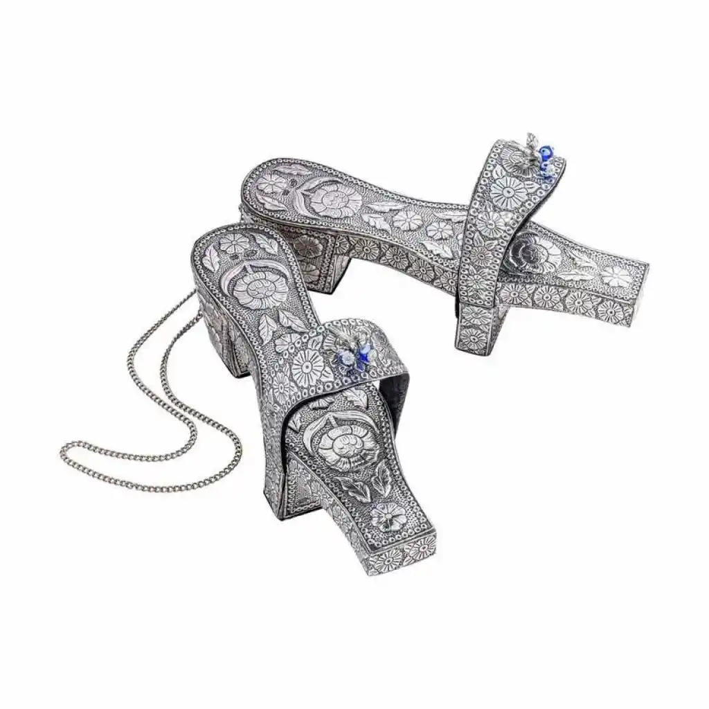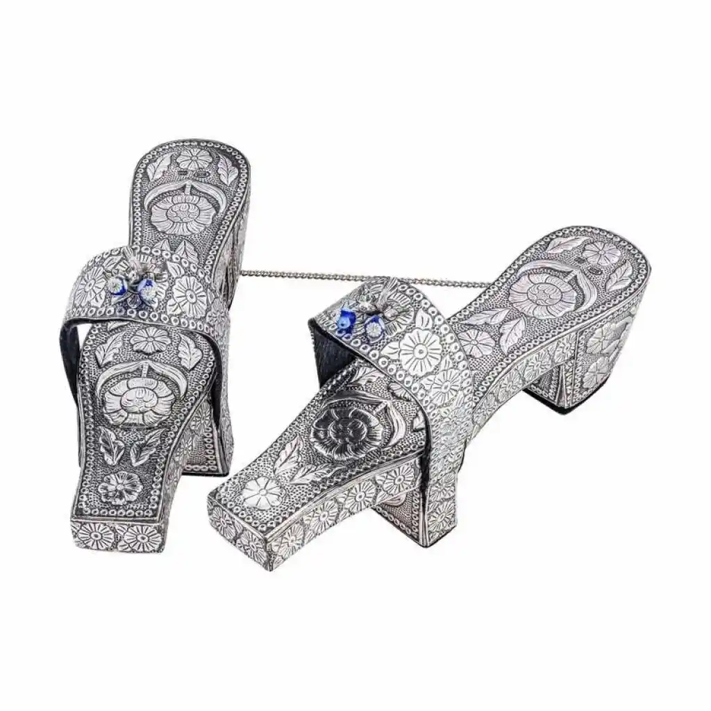 Takunyalar: Bir çift ayakkabı anlamına gelen naleyn” kelimesinden türetilmiştir. Kızgın hamam zemininden ayakları korumak için yapılmıştır. Gümüş çiçek desenli takunya modeli 925 ayar gümüşten imal edilmiştir. Gümüş üzerine oksit kaplama yapılmıştır. Oksit kaplama yapılan gümüşler parlaklığını uzun süre muhafaza eder, oksitlenmesi gecikir. Tüm ürünlerde olduğu gibi bu gümüş çiçek desenli takunya tamamı el emeği ile üretilmiştir. Gümüş ve değerli taşlar nedeniyle belirtilen ortalama ürün ağırlığında ± %10 sapma olabilmektedir.