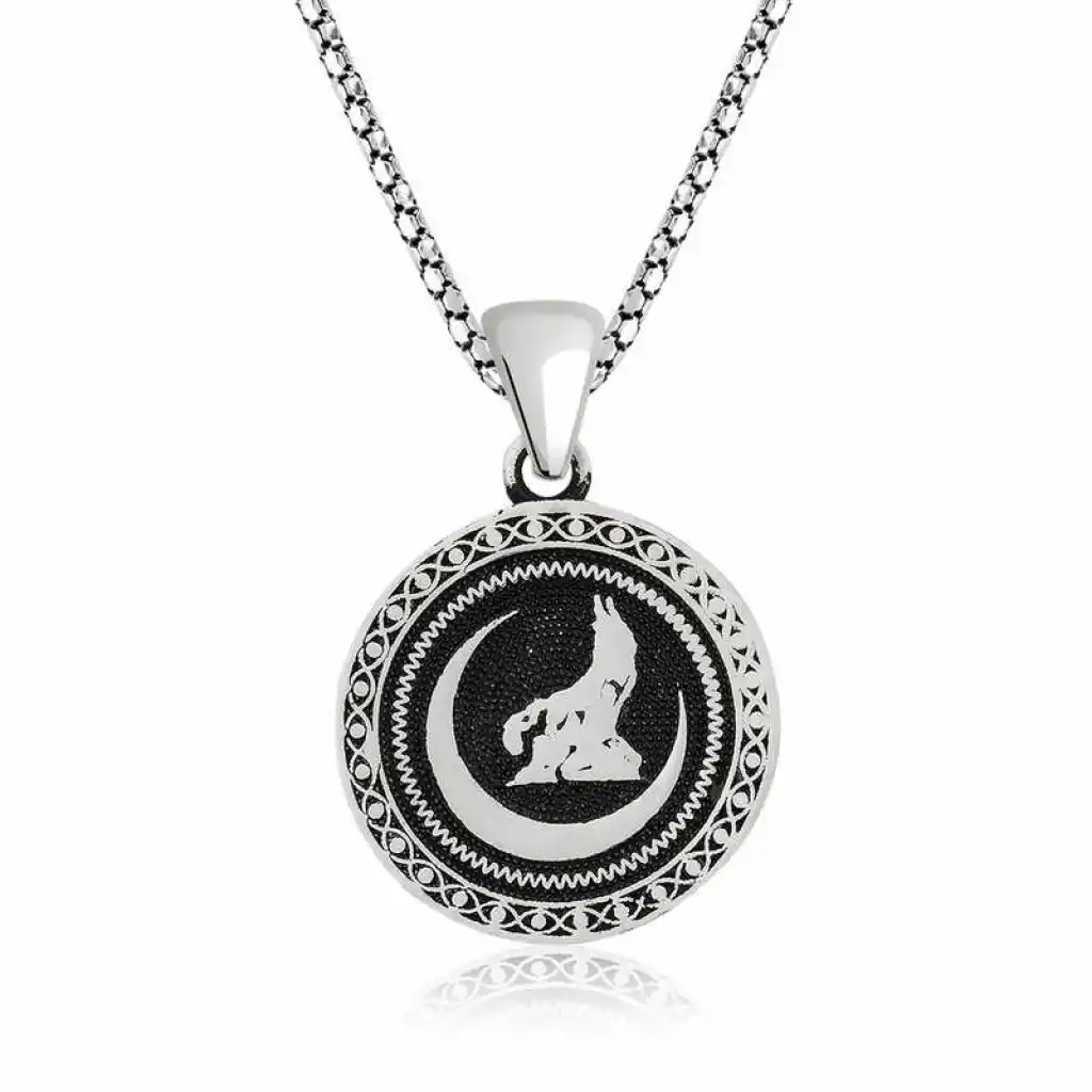 Bozkurt, Türklerin ulusal sembolüdür. Tarih öncesi dönemlerden beri Türklerce kutsal sayılmıştır. Bozkurt"un kutsal sayılmasının ve Türklerin ulusal sembolü olmasının en önemli nedeni, Türklerin bir bozkurtun soyundan geldiklerine inanmalarıdır. Bozkurt, bugün Türk milliyetçiliğinin sembolüdür. Atatürk tarafından da ulusal sembol ilan edilmiş ve birçok yerde kullanılmıştır. Cumhuriyet’in ilk yıllarında Türk Parası üzerine Bozkurt resimleri basılmıştır. Hilal taktiği (veya Turan/Türk taktiği) adı verilen yarım çember ile düşmanı ortaya alıp çemberi kapatma stratejisinin kurtlardan görülerek ilk defa Türkler tarafından uygulanmıştır. 925 ayar gümüşten imal edilmiştir. Gümüş üzerine oksit kaplama yapılmıştır. Oksit kaplama yapılan gümüş kolye modelleri parlaklığını uzun süre muhafaza eder ve oksitlenmesi gecikir. Gümüş olan zincir boyu ortalama 55 cm"dir. Bu bozkurt kolye de diğer gümüş kolye modellerinde olduğu gibi el emeği ile üretilmiştir. Gümüş ve değerli taşlar nedeniyle belirtilen ürün ağırlığında ± %10 sapma olabilmektedir.