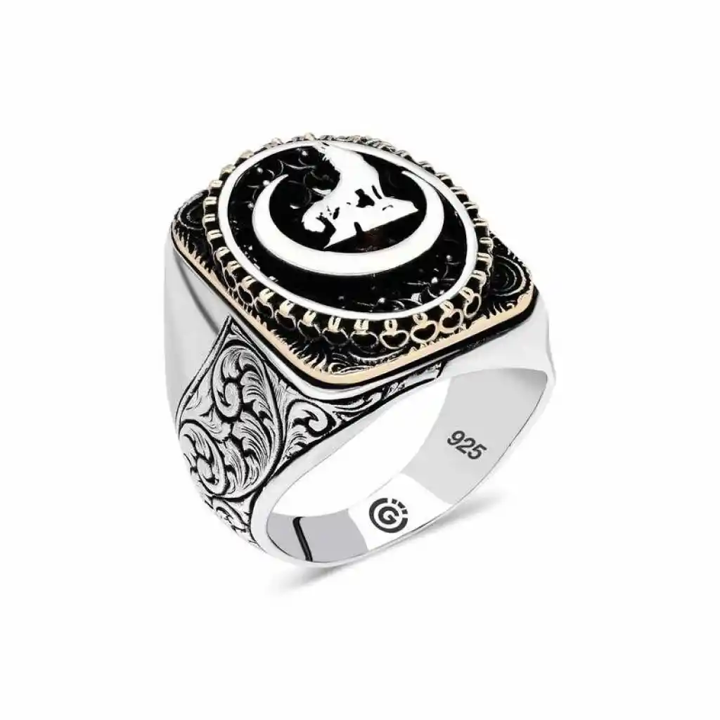 • Gümüş Hilal Bozkurt Oval Erkek Yüzük Bozkurt Yüzükler Gümüş Hilal Bozkurt Oval Erkek Yüzük Gümüş üzerindeki hilal bozkurt oval erkek yüzük modeli günün her anında kullanabileceğiniz şık bir aksesuardı