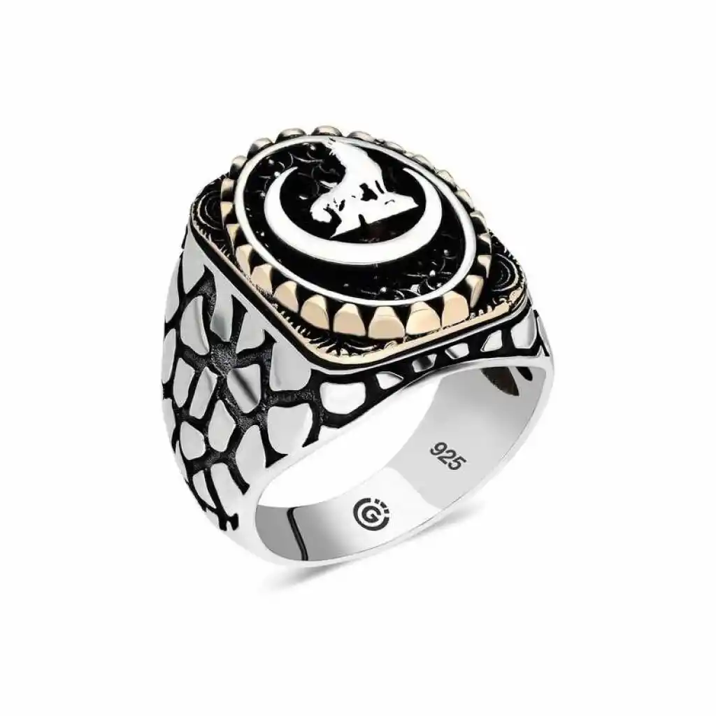 Gümüş Hilal Bozkurt Oval Erkek Yüzük