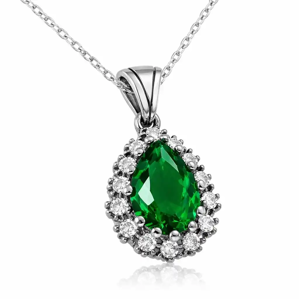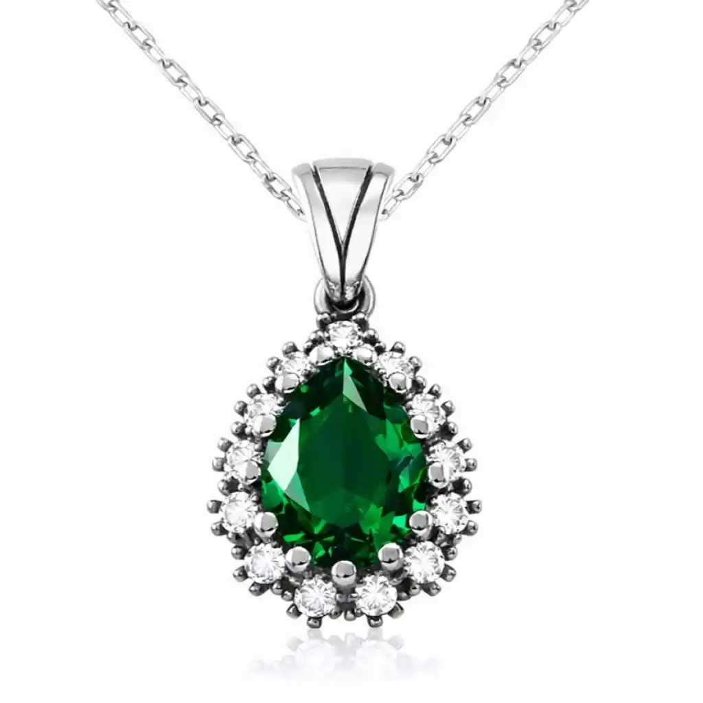 Şıklığı, zarafeti ve bütün ihtişamıyla Hürrem Sultan ve onu yansıtan birbirinden eşsiz takıları... Osmanlı motiflerini taşıyan, doğal taşlı, iri gümüş yüzükler tüm kadınların vazgeçilmezi... Hiçbir dönemde zarafetinden ödün vermeyen Hürrem Sultan modellerini doğum günü hediyesi veya annelere hediye olarak özel günlerde tercih edilebilecek mükemmel bir seçenektir. Hürrem Sultan bayan kolye 925 ayar gümüş kullanılarak imal edilmiştir. Yeşil, beyaz zirkon taşlar kullanılarak ortaya çıkan Gümüş Hürrem Sultan bayan kolye modeli üzerine oksit kaplama yapılmıştır. Hürrem Sultan bayan kolyenin uzunluğu 45 cm’dir. Tüm gümüş otantik kolye modellerinde olduğu gibi gümüş Hürrem Sultan bayan kolye de el emeği ile üretilmiştir. Gümüş ve değerli taşlar nedeniyle belirtilen ortalam ürün ağırlığında ± %10 sapma olabilmektedir.