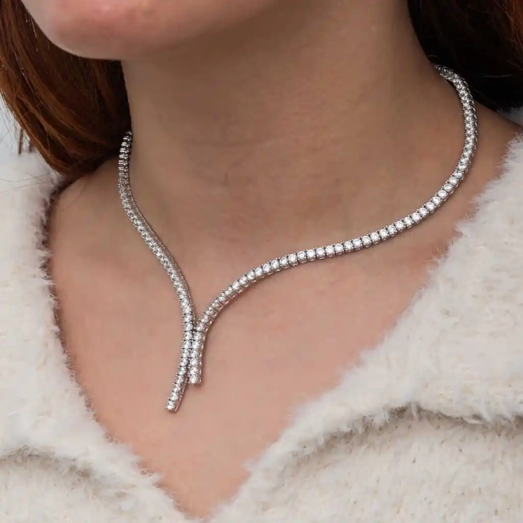 Gümüş İki Sıralı Su Yolu Kadın Kolye