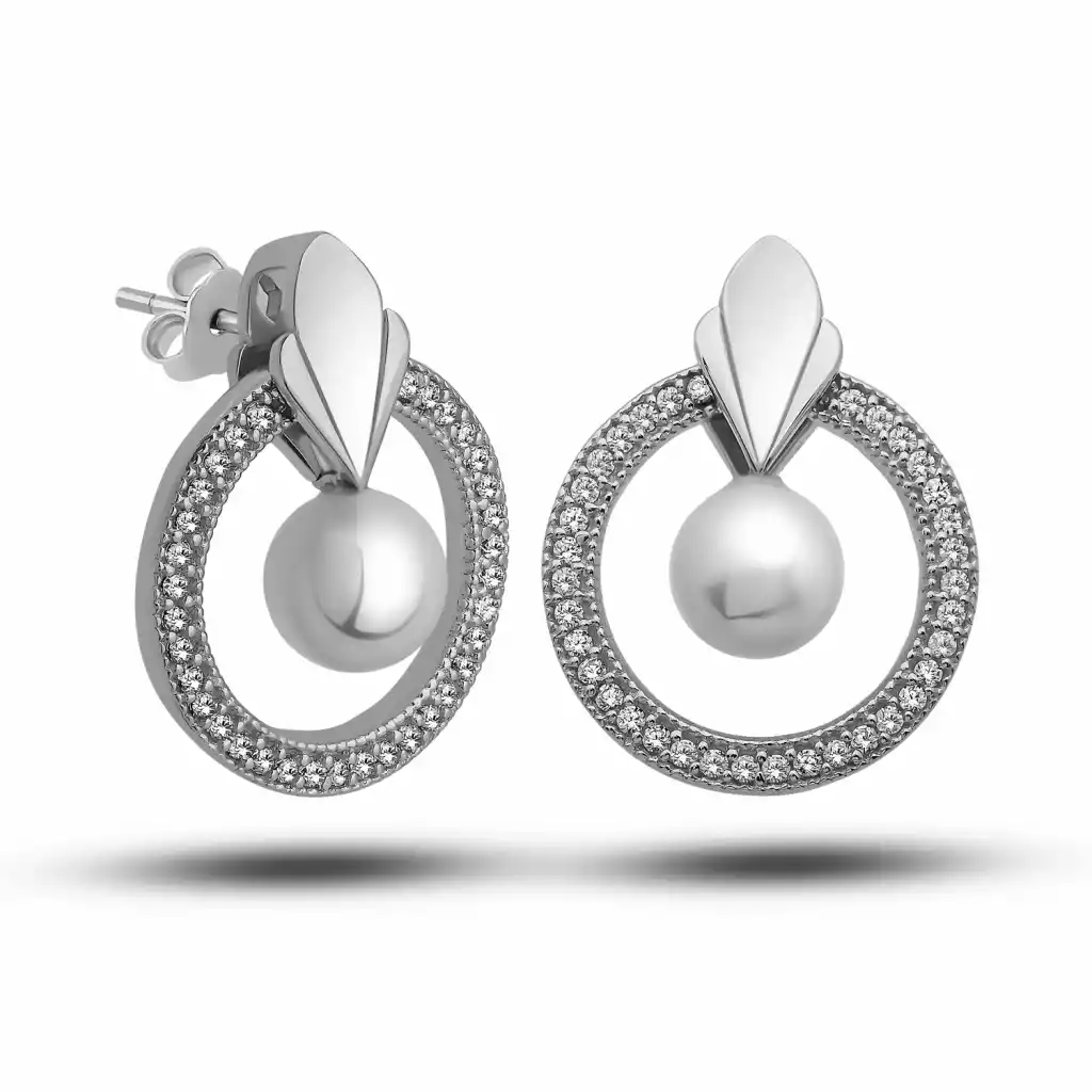 Gümüşün asil parlaklığını inci zarafetiyle buluşturan bu özel tasarım küpe, modern ve şık görünümü bir arada sunar. Taşlarla bezeli çember formu, ışığı her açıdan yansıtarak göz alıcı bir ışıltı oluştururken, merkezde yer alan inci detay tasarıma sofistike bir dokunuş katar. Hem günlük kombinlerde zarif bir tamamlayıcı, hem de özel davetlerde dikkat çekici bir aksesuar olarak kullanılabilir.Kaliteli işçiliği ve zamansız tasarımıyla uzun yıllar keyifle kullanılabilecek bu küpe, zarafeti seven tüm kadınlar için ideal bir seçimdir.Gümüş ve değerli taşlar nedeniyle belirtilen ortalama ürün ağırlığında ± %10 sapma olabilmektedir.